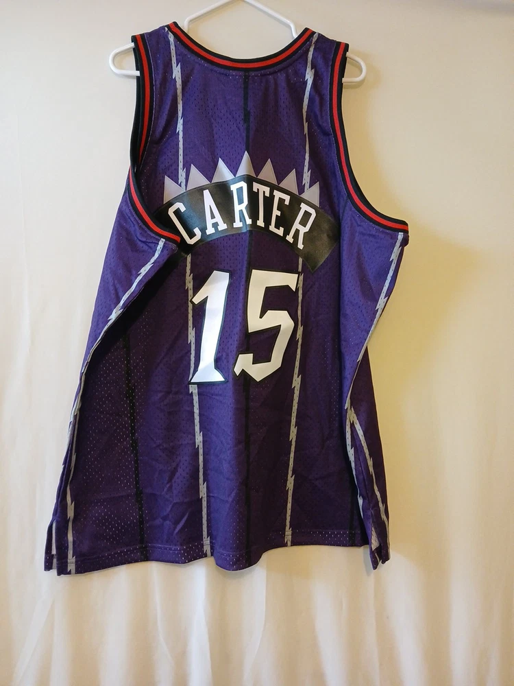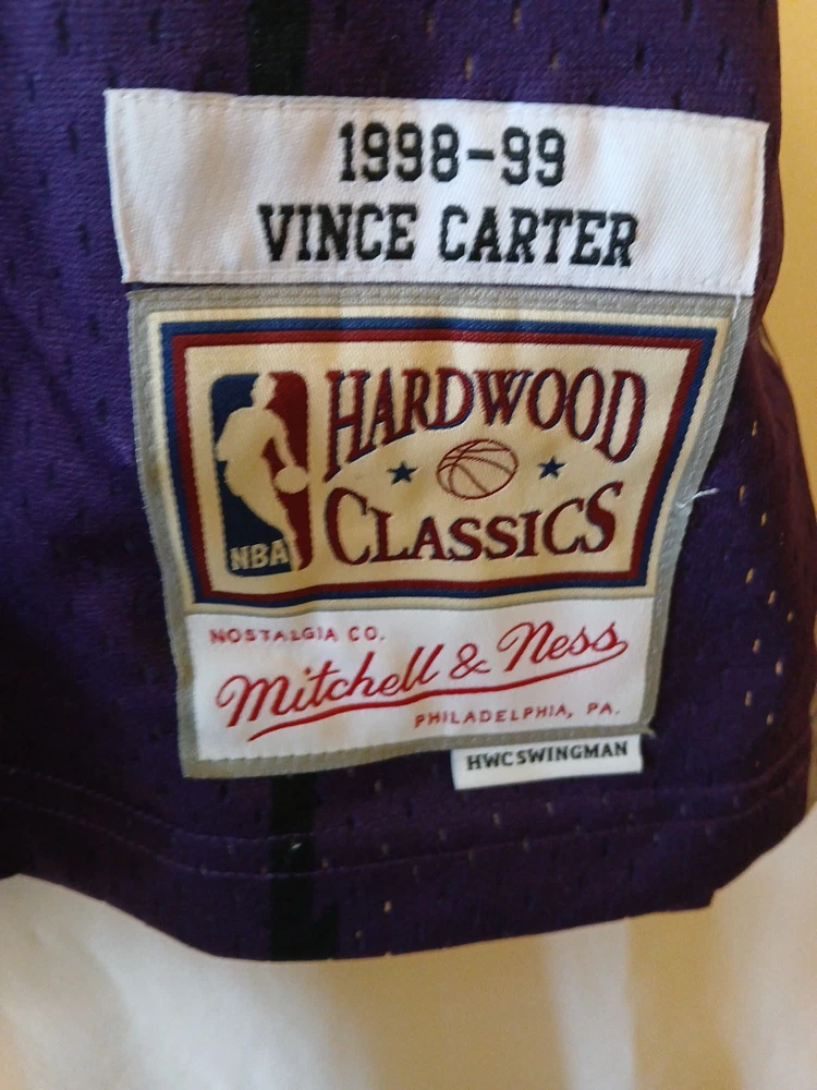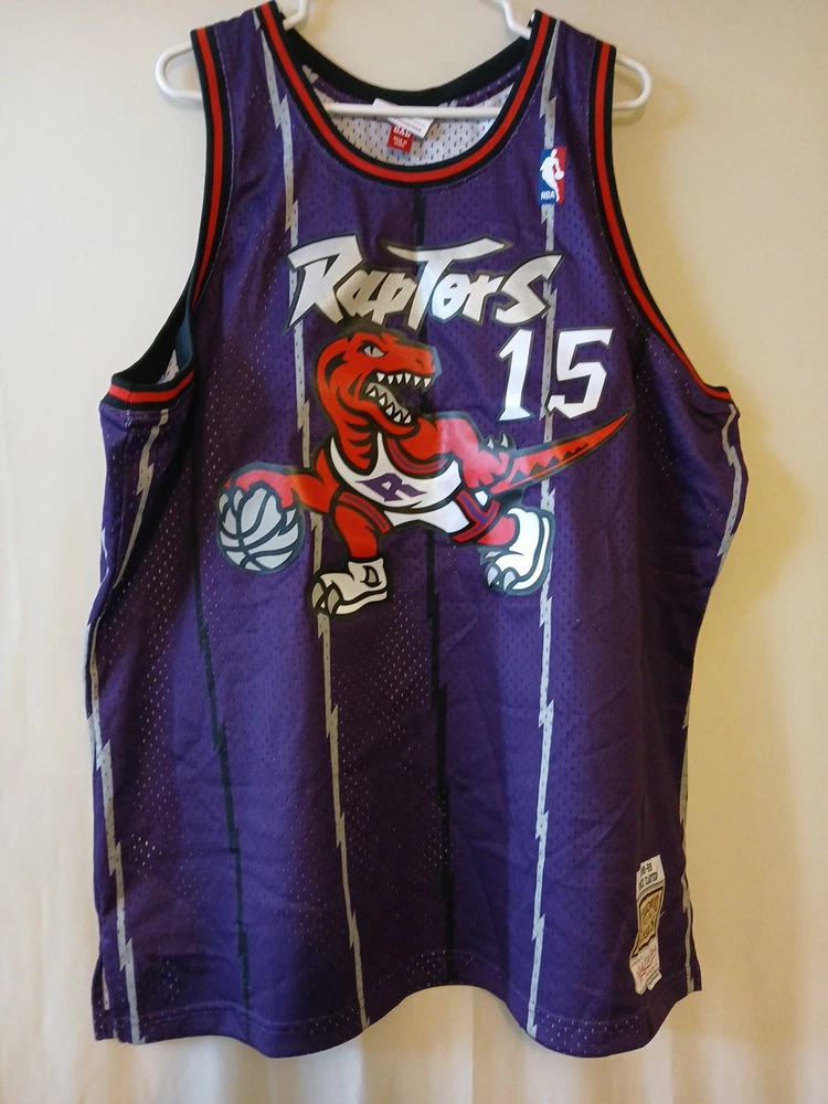 Celebrate the legacy of Vince Carter with this authentic Mitchell & Ness Toronto Raptors NBA jersey. Made with high-quality materials, this jersey is officially licensed and perfect for any basketball fan. The vibrant purple color and detailed design make it a standout piece for any collection. Available in size 2XL, this jersey is a must-have for any fan of the Toronto Raptors or Vince Carter. Made in China, this jersey embodies the spirit of the NBA and is perfect for showcasing your team pride.