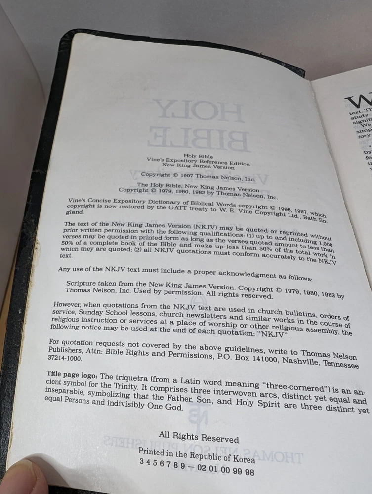 Book Series: Na Publisher: Thomas Nelson Type: Bible Topic: Bible, Reference Country/Region of Manufacture: United States Format: Hardcover Features: Reference Book Title: Holy Bible gtin13: NA ISBN: NA Author: Thomas Nelson Bible Original Language: English Publication Year: 1997 Genre: Religious & Spiritual Intended Audience: Young Adults, Adults Personalize: No Language: English Narrative Type: Nonfiction