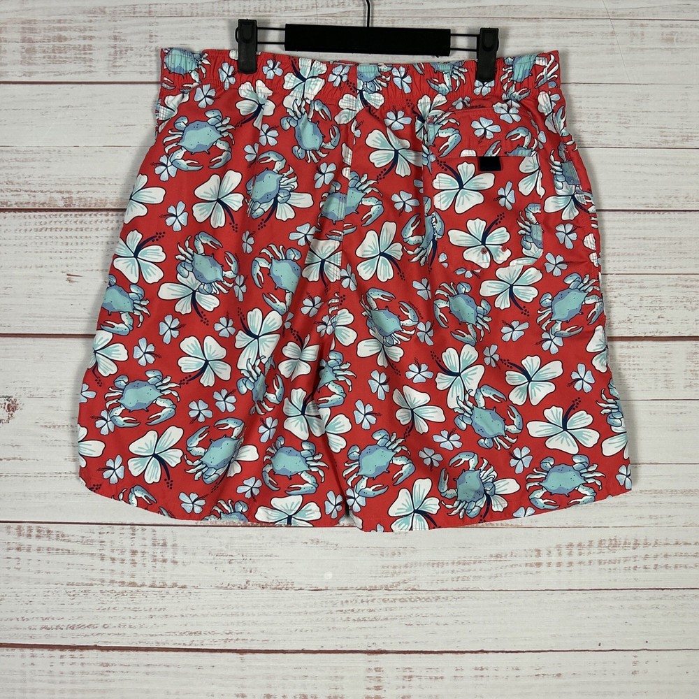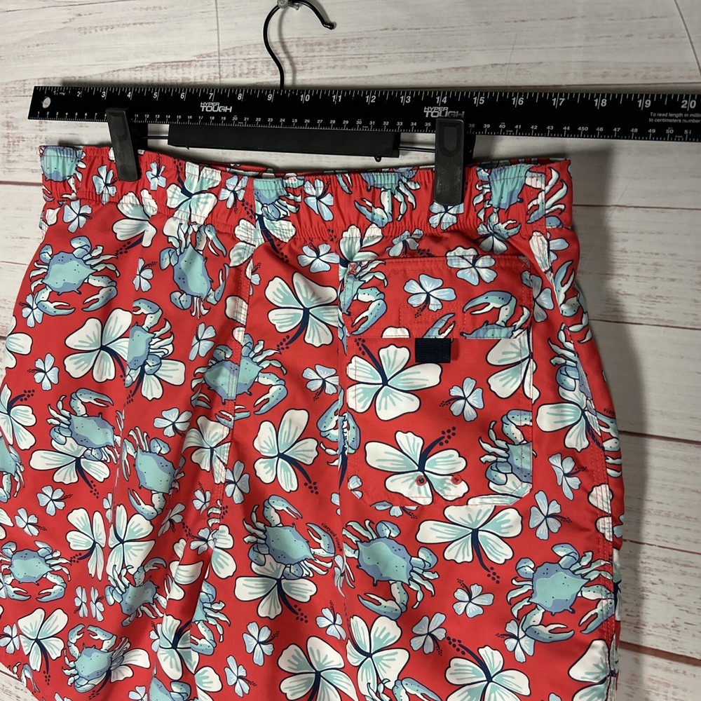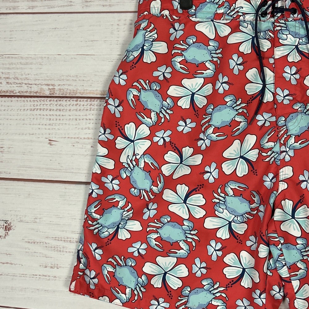 Vineyard Vines Board Shorts Mens XL (36) Red 8" Inseam Polyester Crabs Floral