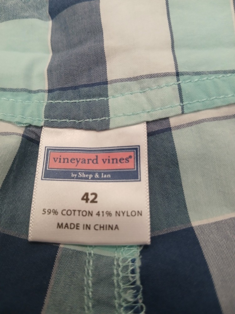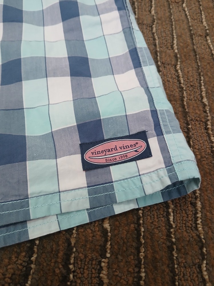These Vineyard Vines Flat Front Plaid Swim Trunks in Men's Size 42 are perfect for a beach vacation or surfing adventure. Made from a blend of polyester and spandex, these swim trunks are lightweight, stretchy, and quick-drying. The multicolor plaid design adds a colorful and vibrant touch, while features like a back pocket, drawstring waist, and breathable fabric ensure comfort and functionality. Whether you're lounging by the pool or catching waves, these swim trunks are a stylish and practical choice for a day of fun in the sun.