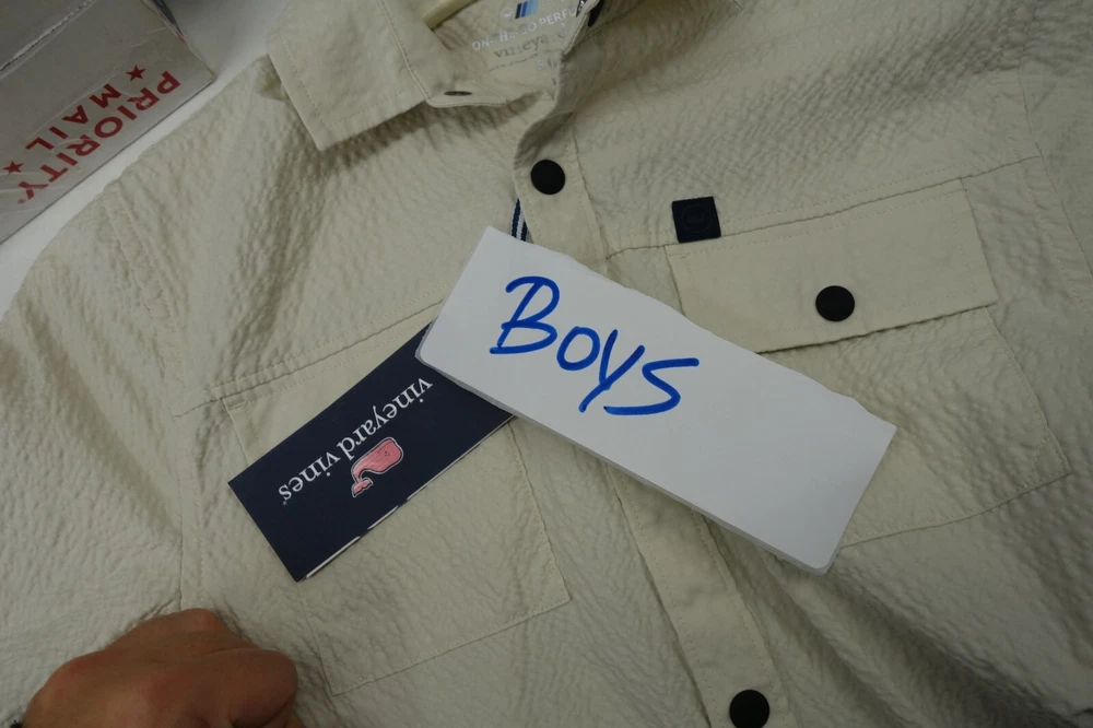 Vineyard Vines Kids Ivory OTG Performance Button Up Jacket Coat Size S (8-10) Imported. Retails for $48.95, Get it here for a fraction of the price! SKU: 3081-MWAUG Terms Of Sale We ship Worldwide, 5 days a week. A purchase on Friday after 3pm, sometimes will not ship till Monday. Shipping In the continental USA, items usually arrive within 4 business days, please allow more time for international shipping. Items may be combined when paid together on the same invoice. Additional shipping costs are as follows: $3.45 for each additional item IN THE USA. Outside of the USA – $9.99 to $35.00 depending on the item, please message us for rates ahead before purchasing International Shipping: Import duties, taxes and charges are not included in the item price or shipping charges. These charges are the buyer's responsibility. Please check with your country's customs office to determine what these additional costs will be prior to bid or purchase. Guarantee: Please leave us 5 stars, if you feel we have fallen short, do not hesitate to message us so we may have a chance to make it right.