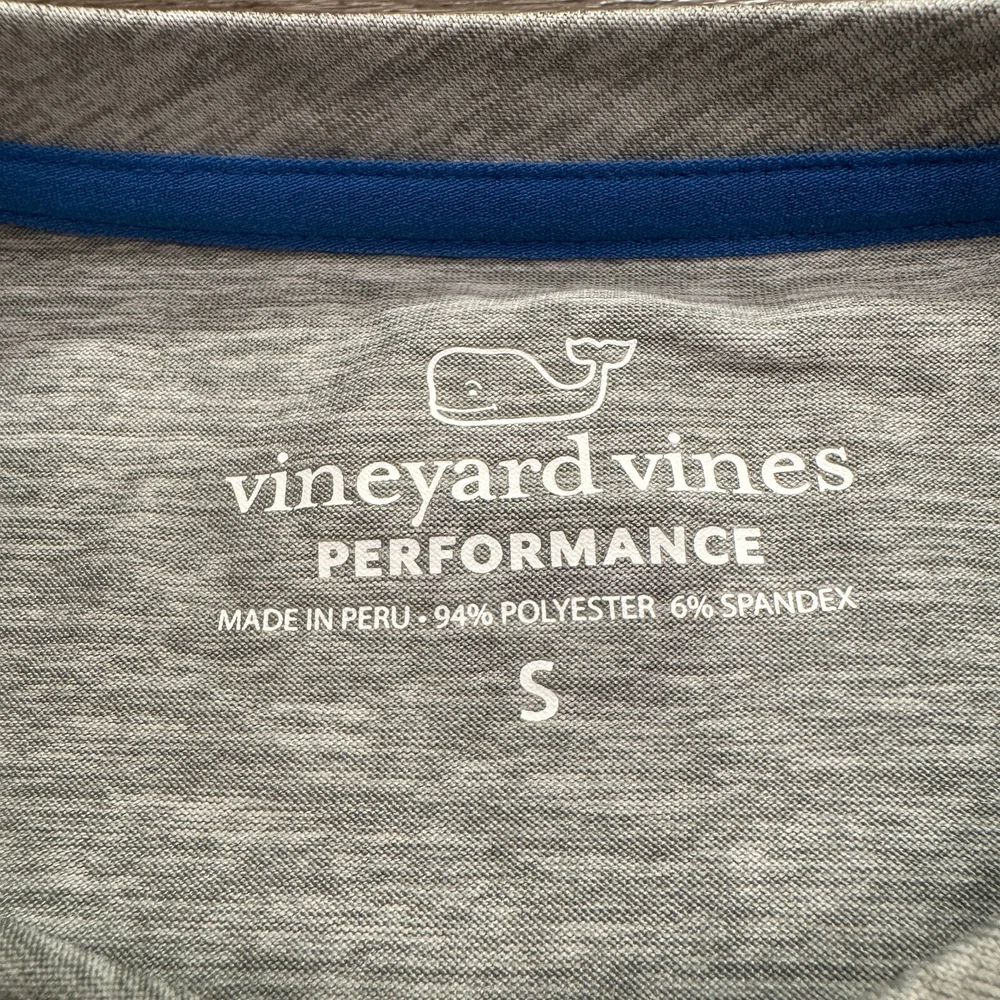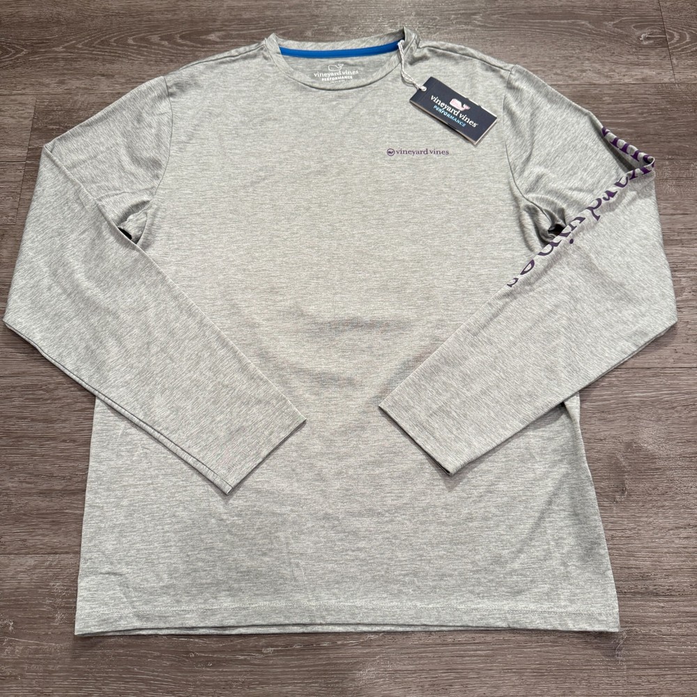 Style: Basic Fit: Regular Closure: Pullover Pattern: Solid Brand: Vineyard Vines Neckline: Crew Neck Occasion: Activewear Theme: Shark Size: S Type: T-Shirt Department: Men Material: Polyester Blend, Spandex Performance/Activity: Athleisure, Baseball Sleeve Length: Long Sleeve Color: Gray Size Type: Regular Features: Breathable, Easy Care, Moisture Wicking