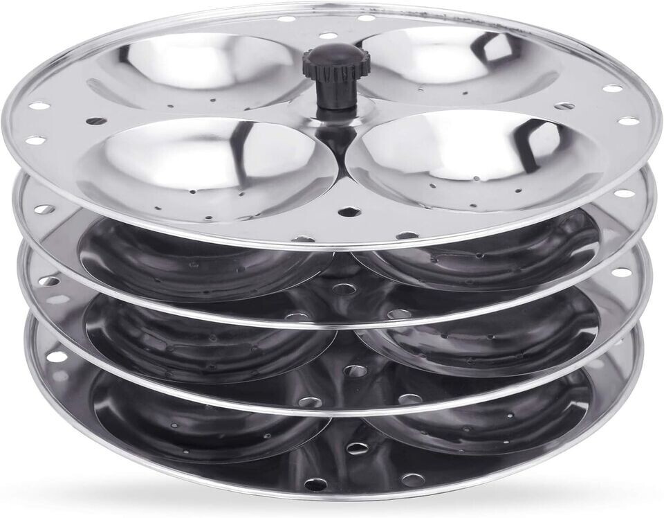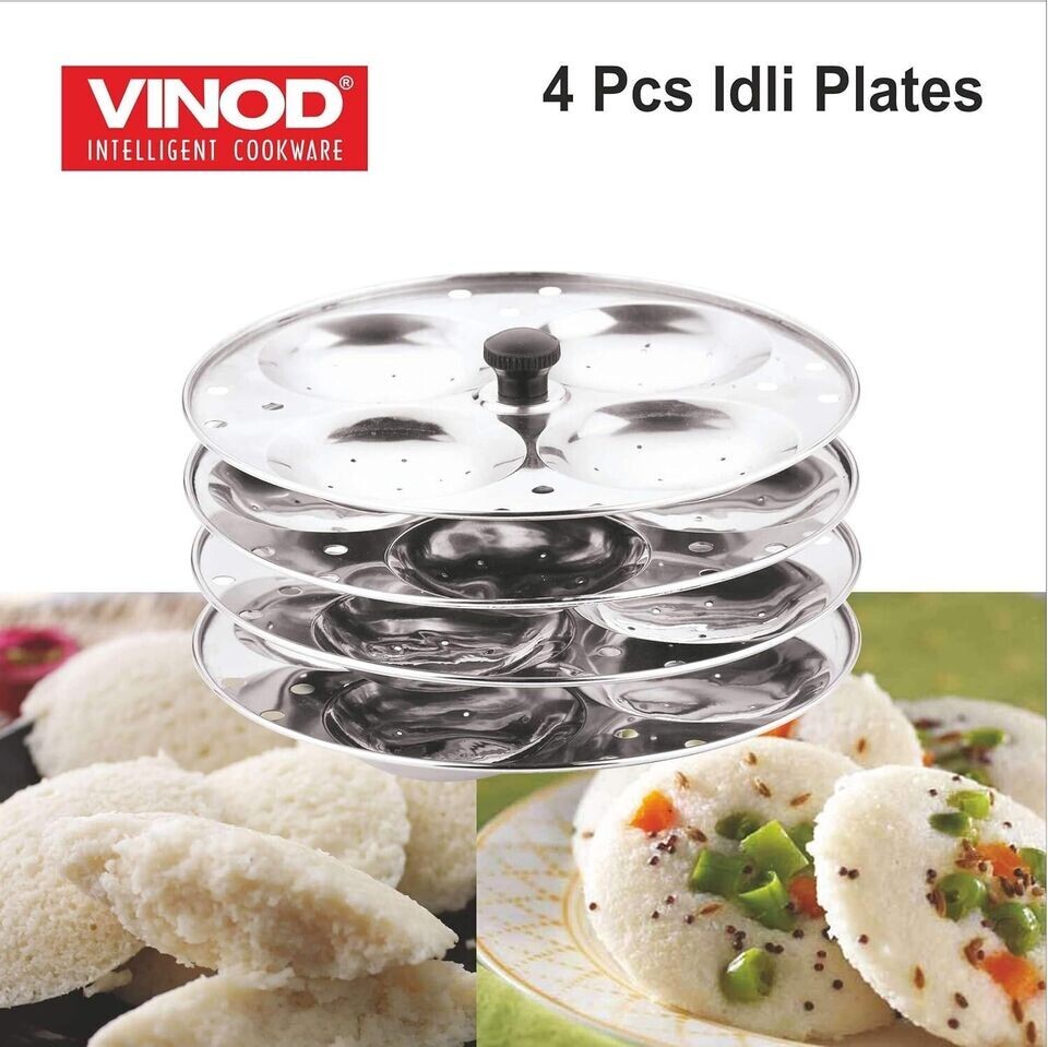 Vinod Idli Maker Stand Stainless Steel 4 Tier Indian Cooking Makes 16 Idlis Vinod Stainless Steel Idli Cooker is crafted with premium grade stainless steel, making it highly resistant to rust and corrosion - perfect for long-term use. Heat Resistant Handles - This 4 tier Vinod stainless steel idli cooker and stand is equipped with heat-resistant handles for safe and easy handling. Perfect for making delicious mini idlis, this mini idli stand with cooker is ideal for your kitchen. Easy to Clean and Maintain - Crafted from stainless steel, this idli stand boasts a surface that's a breeze to clean. Spend less time on maintenance and more time enjoying your delicious idlis! Authentic South Indian Delight: Enjoy homemade idlis with ease. Fast and Even Cooking: Ensures perfectly cooked idlis every time.