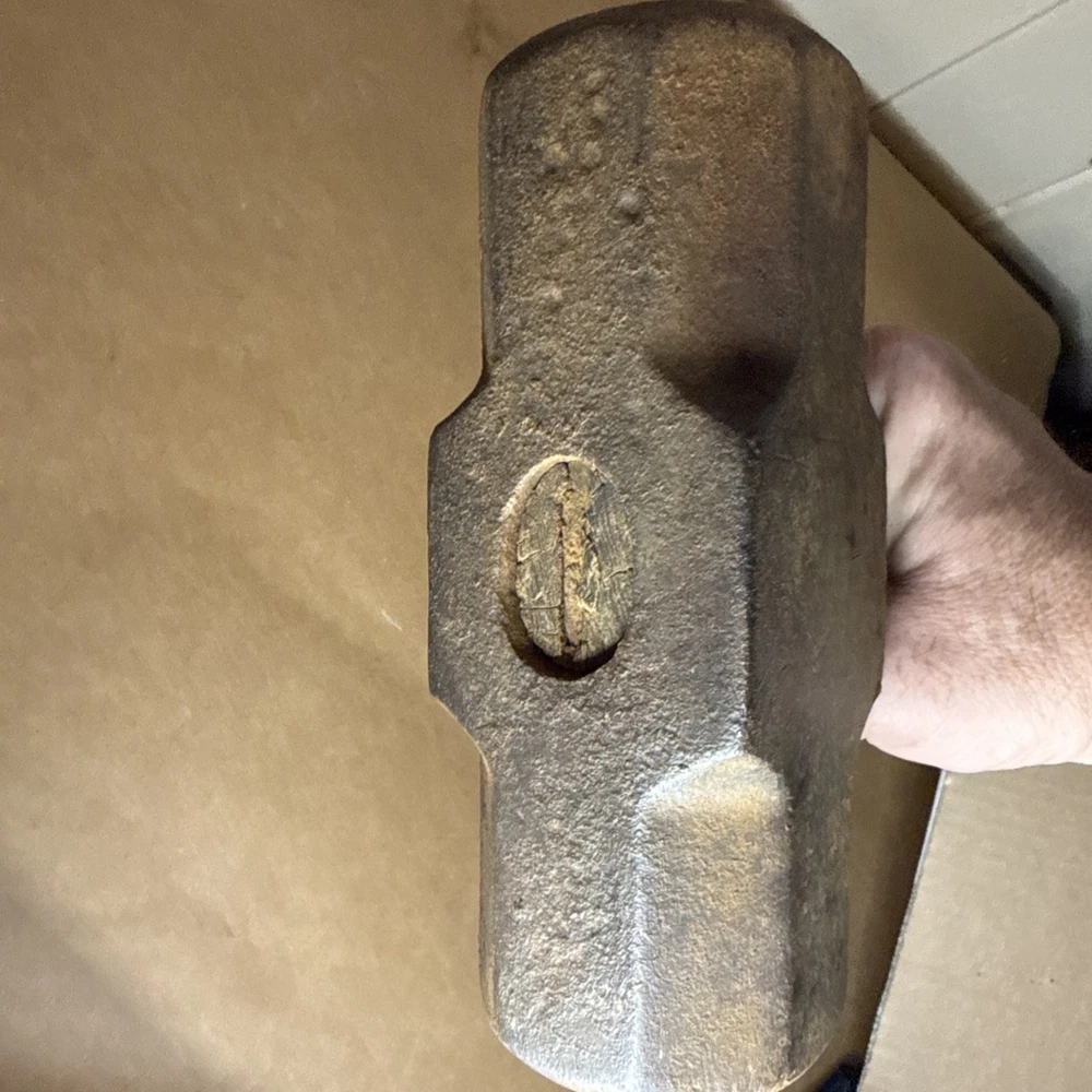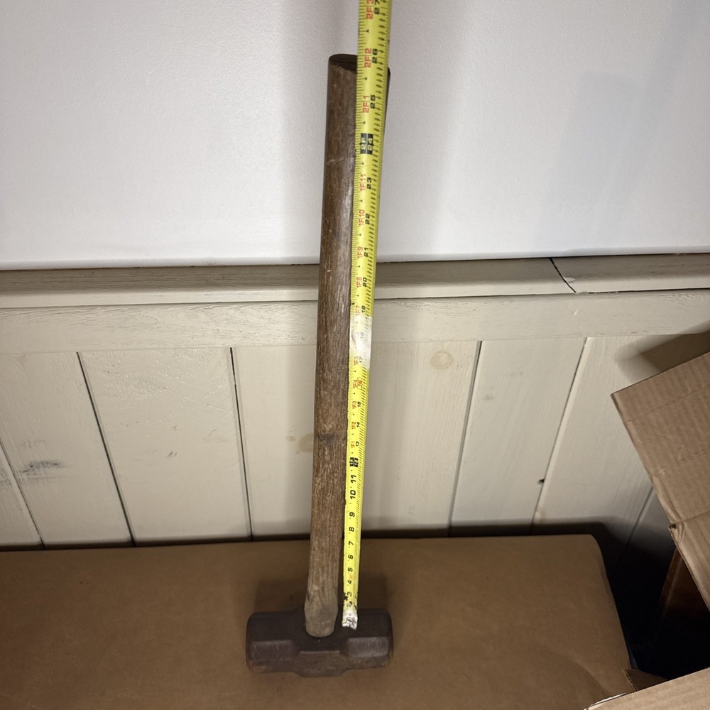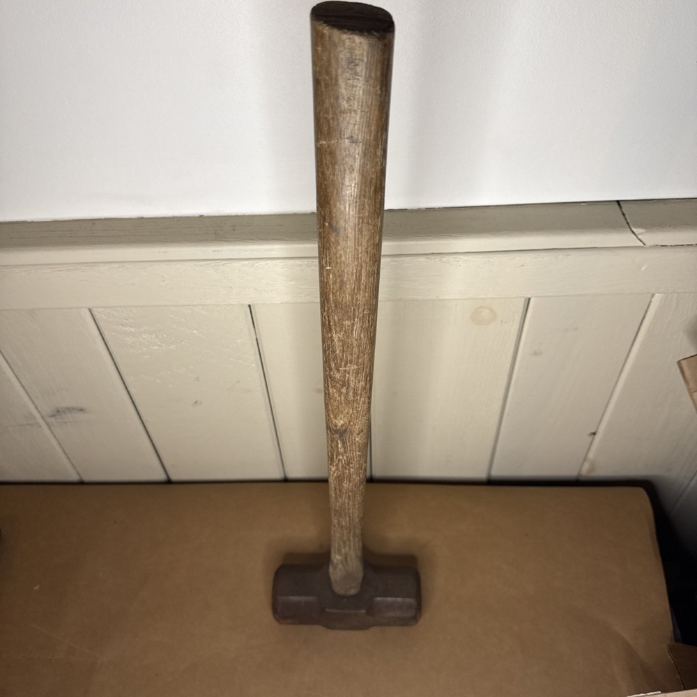 Vintage 10 lb Sledgehammer – Made in England Authentic British-made 10 pound sledgehammer featuring a classic forged steel head and a 25-inch wooden handle. Clearly stamped “Made in England”, pointing to mid-20th-century manufacture and traditional Sheffield-area forging quality. This is a solid, old-school tool with great weight balance and excellent industrial character—perfect for use, collection, or rustic/industrial décor. 🔨 Details: • Head weight: 10 lb • Overall length: approx. 25 inches • Origin: Made in England (stamped) • Handle: Wood, tight and secure with expected age wear • Condition: Good vintage condition; normal surface wear and patina from age and use • Markings: “Made in England” with additional forge/weight markings