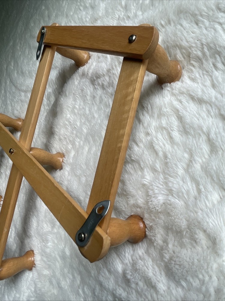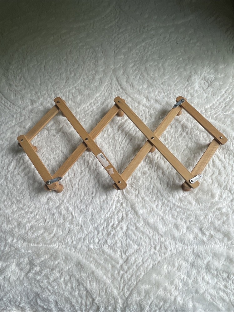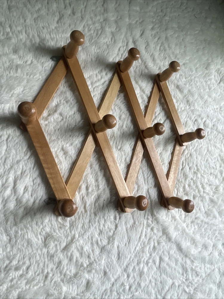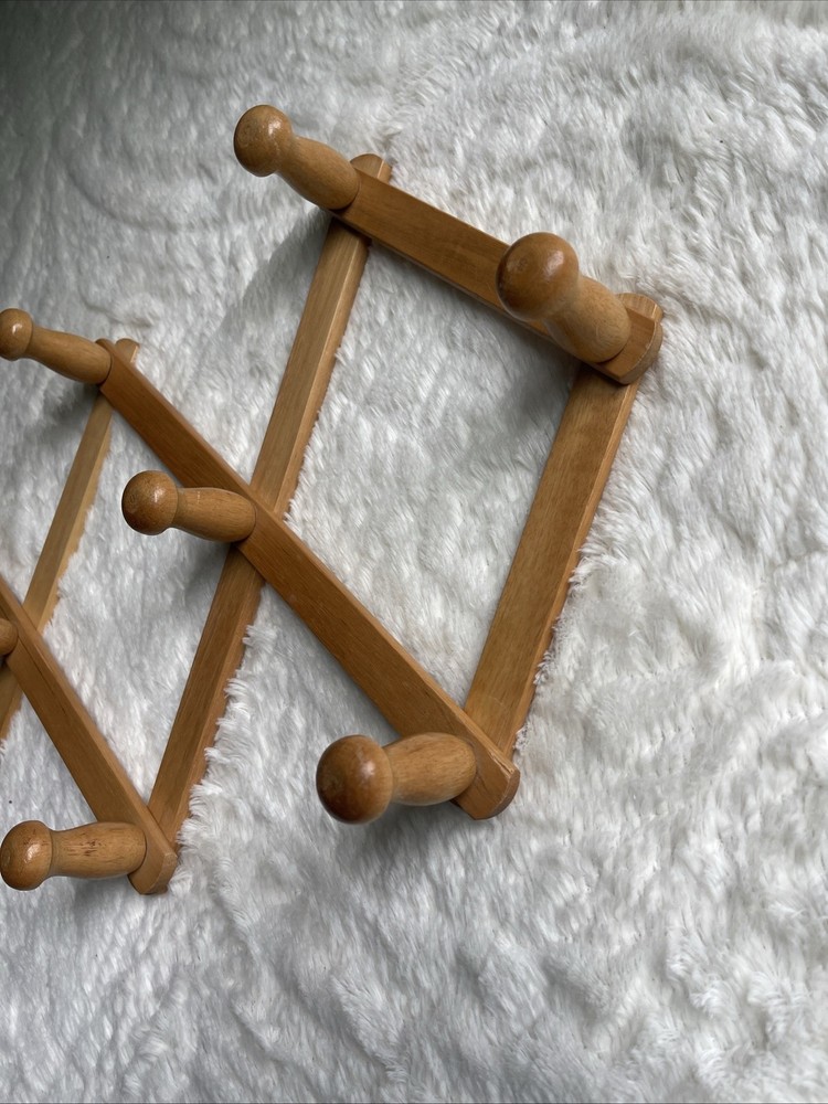 Vintage 10 Peg Accordion Style Hat Coat Rack Taiwan Wood Wall Hanger Cottage
