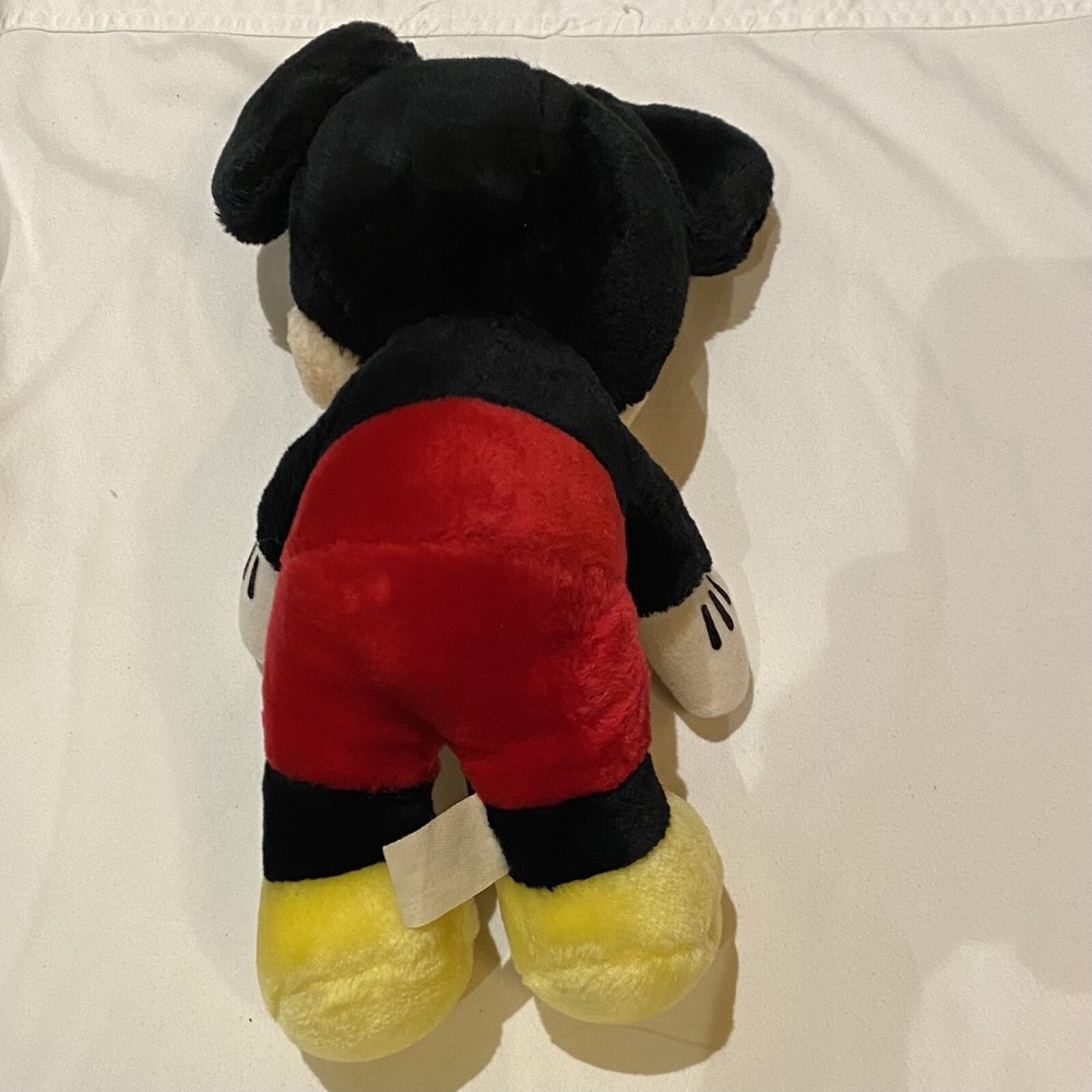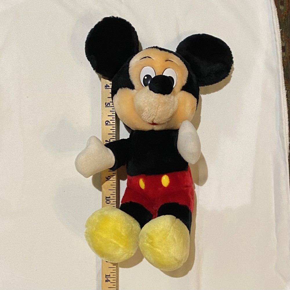 The product is a 12-inch vintage Disneyland Walt Disney World Mickey Mouse plush stuffed animal. Made by Disney, this collectible item features the iconic character Mickey Mouse from the Disney franchise. Produced in Sri Lanka, this classic plush toy is a must-have for any Disney enthusiast looking to add a piece of nostalgia to their collection. Perfect for fans of Mickey Mouse and Disneyana, this stuffed animal is a timeless treasure that brings joy and memories of the beloved character.