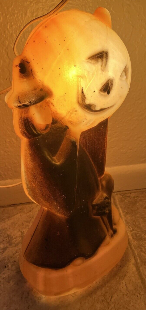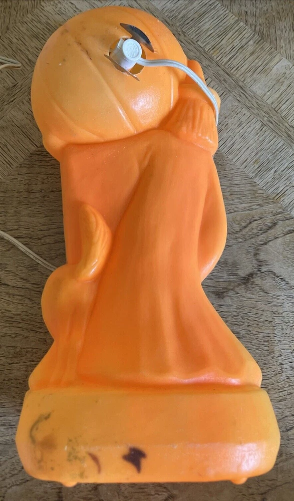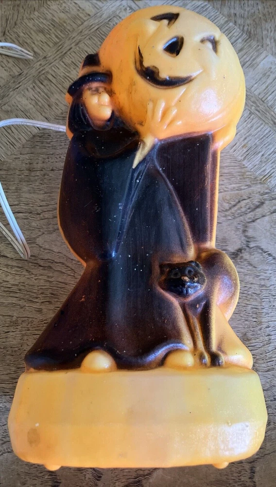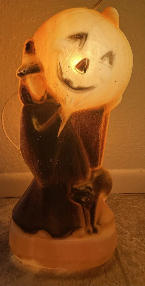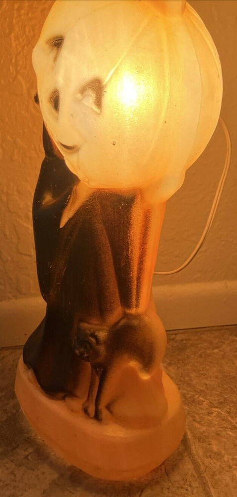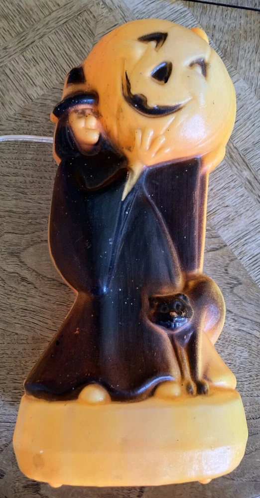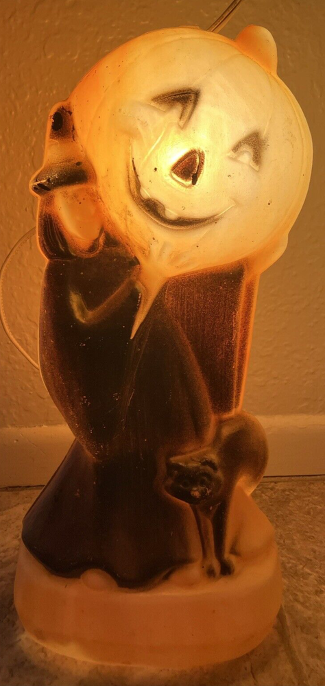 Vintage Halloween Blow Mold Witch Pumpkin Cat 14” Pre-owned. See photos for condition details. To upcycle, I reuse shipping material as often as possible. Buy more from my store and save on shipping.