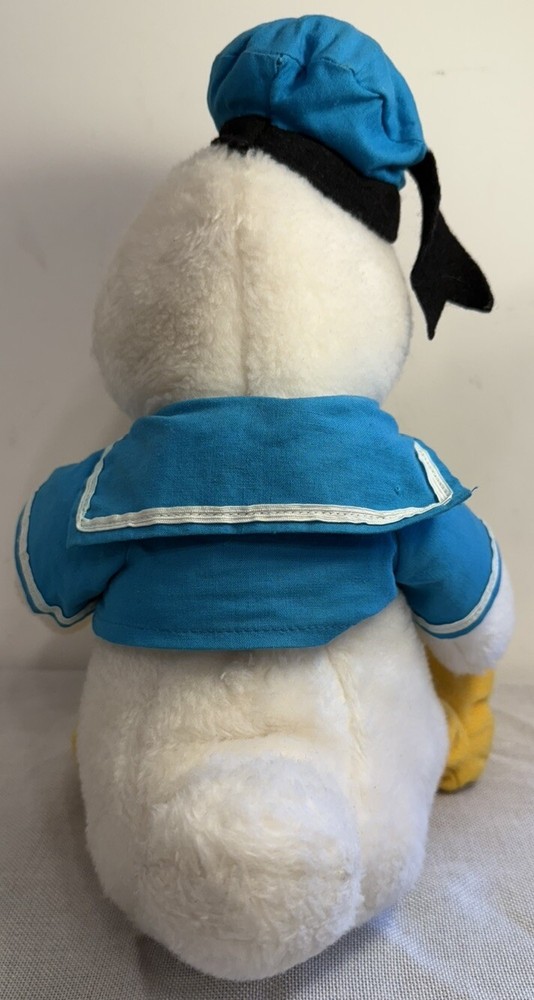 Vintage Walt Disney Characters Donald Duck Plush 15" With Tags USA Made Used, missing yellow fabric buttons on front if shirt, easy fix if you wanted to. Super cool piece but shows is age a little bit. E) for inventory purposes only