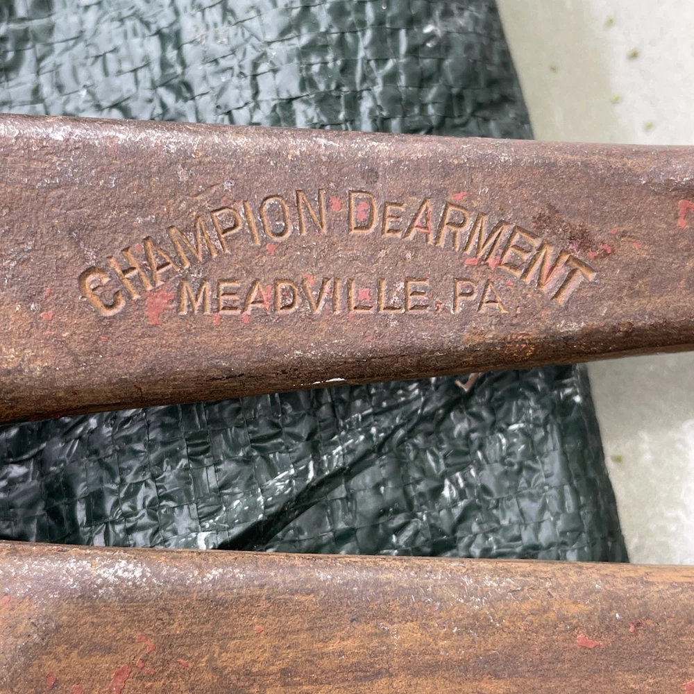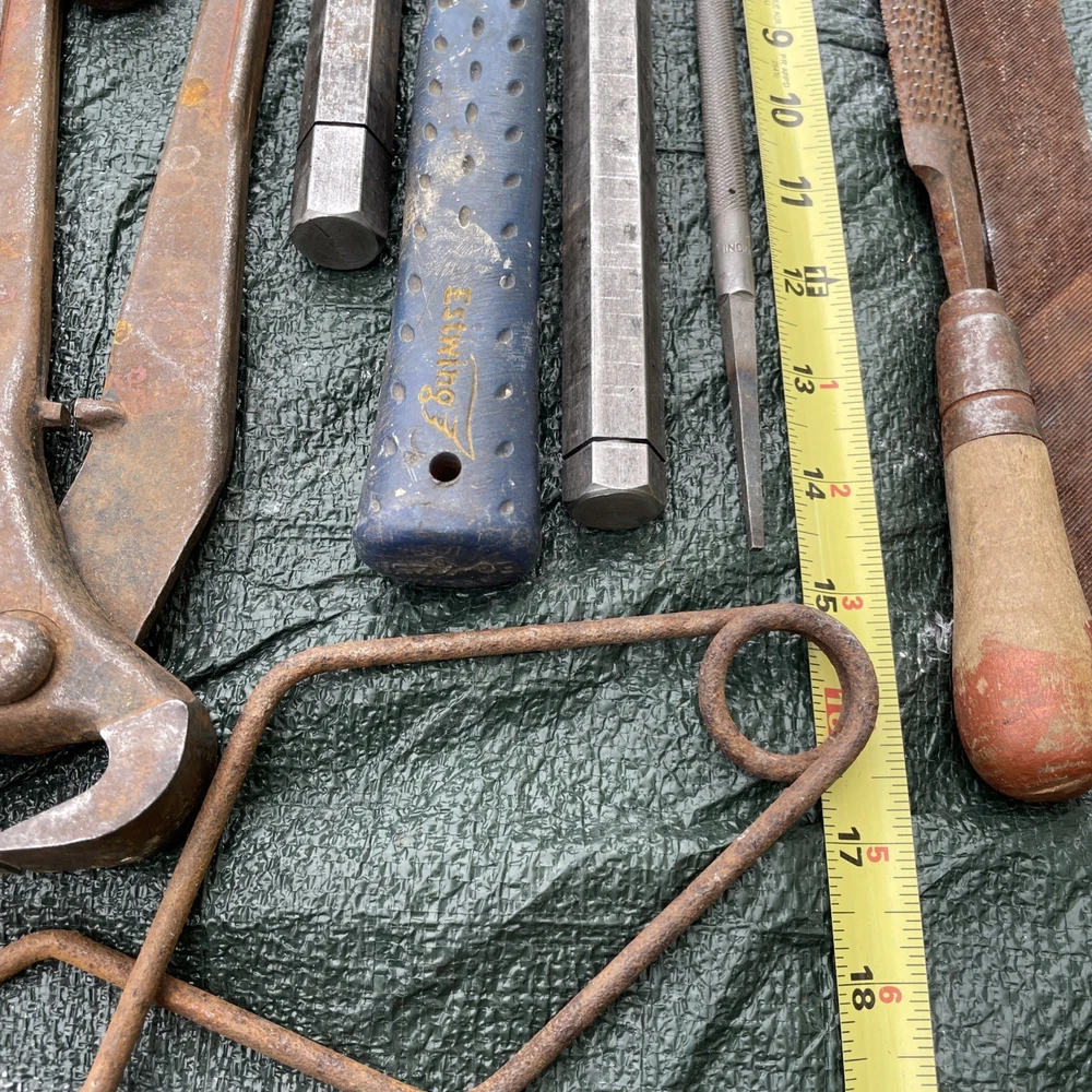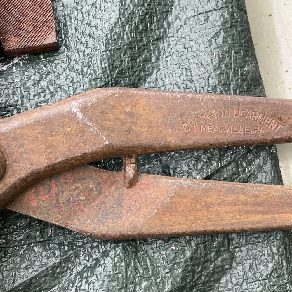 This product is a set of 15 antique 1900s adjustable wrenches, nippers, hammers, rasps, and files, along with a reversible screwdriver. These vintage tools would be a great addition to any collectibles or tools enthusiast's collection. The set includes a variety of tools that were commonly used in mechanics and woodworking during the early 1900s, offering a glimpse into the craftsmanship and techniques of the past. One wrench, Trademark brand, has a wooden handle and looks to be in excellent condition. Great old old blacksmithing tool and cutters nippers. Stamped “Champion Dearment Meadsville PA” 2 files/rasps 1 Vintage 14" Wood Rasp File Round curved Rare 1 Vintage 14” Wood Rasp Steel File Flat