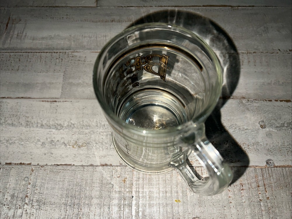 Vintage 16 oz. Clear Glass Gold leaf lettering 5 cent Beer. Very nice condition