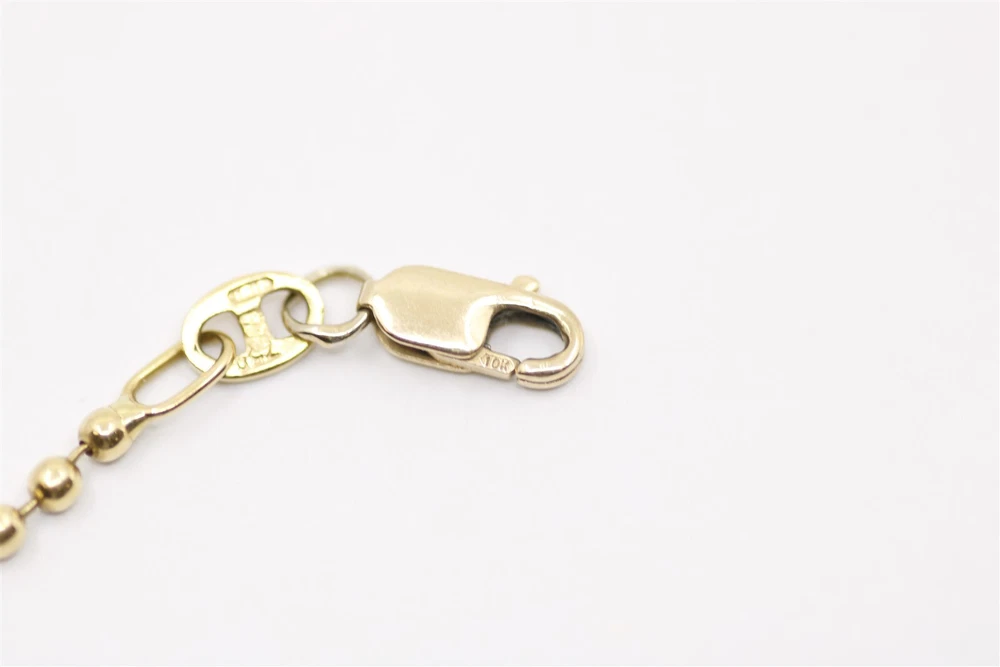 Vintage 18K Yellow Gold 7.5” Beaded Bracelet. This 7.5 inch yellow gold bracelet features a high polish, beaded link design with a width of 1.9mm. **The original lobster clasp has been replaced with a 10K yellow gold lobster clasp.** The lobster clasp has a "10K" hallmark. There is a “750” hallmark on the clasp tab. This beaded link bracelet has a total weight of 3.1 grams. RD02155 Item As Is. All stones not identified unless clarified above. All items are pre-owned and pre-loved. Stones may show minor nicks and abrasions or small signs of wear. Diamonds are graded using GIA standards by GIA Graduates. Diamond and gemstone weight is estimated by formula. The metal is stamped or identified by acid testing and/or XRF alloy analyzer gun. All items shipped USPS First Class, Signature Required Items over $1000 ship overnight, Signature Required Please message with any questions. We are available Monday through Saturday 10am to 6pm. Powered by SixBit's eCommerce Solution