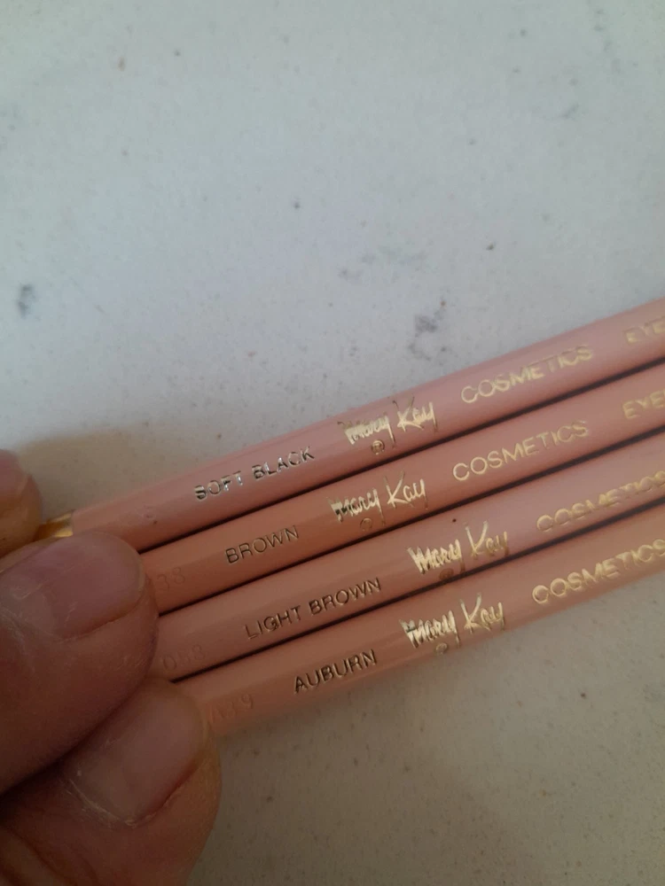 Vintage 19 Pc NOS Mary Kay Eye Brow/Lip Liner/Eye Defining Pencil Assorted Lot! 1 Mary Kay Bag NOS 1 Brush NOS 1 Sharpener NOS 4 Eye Brow Pencils NOS (brown, light brown, soft black, auburn) 3 Lip Liner Pencils (Golden Raisin, Red CURRANT, Wild Strawberry) 9 Eye Defining Pencils NOS (Burnished Ebony (2), Sable, Grape, Misty Violet (2), Slate, Smoky Slate, Navy)