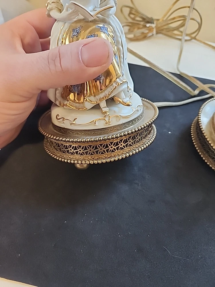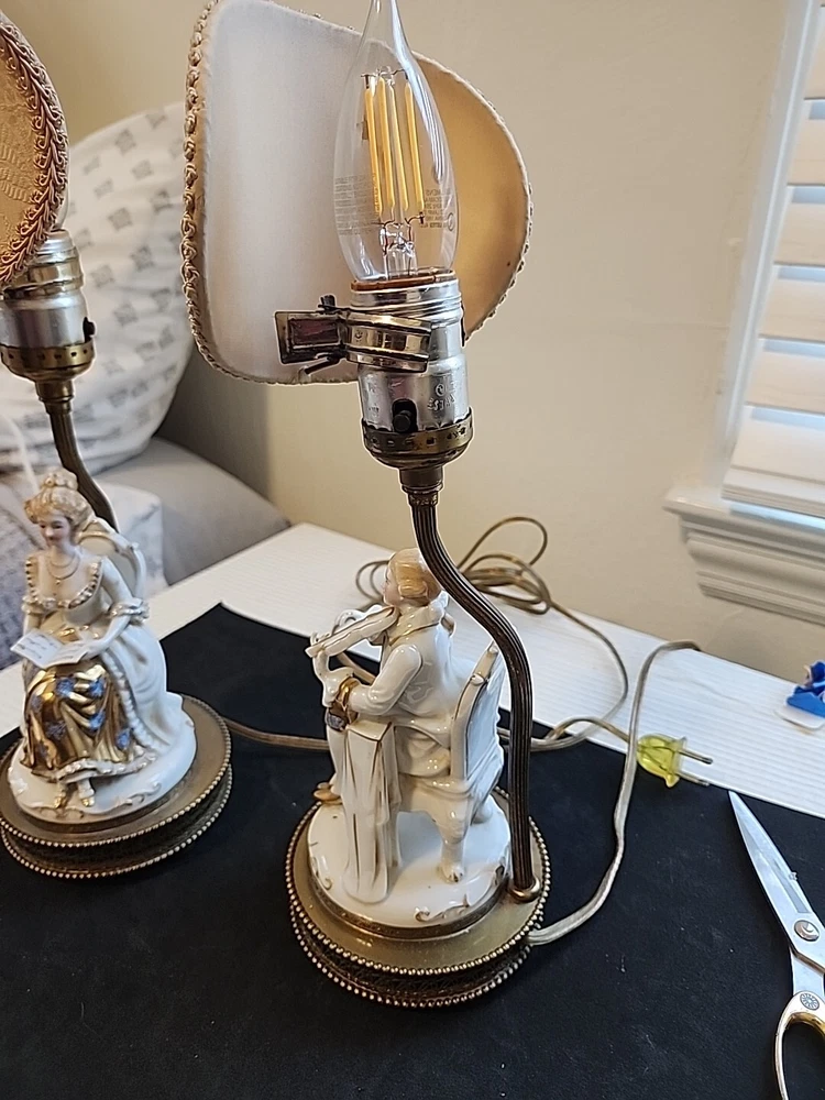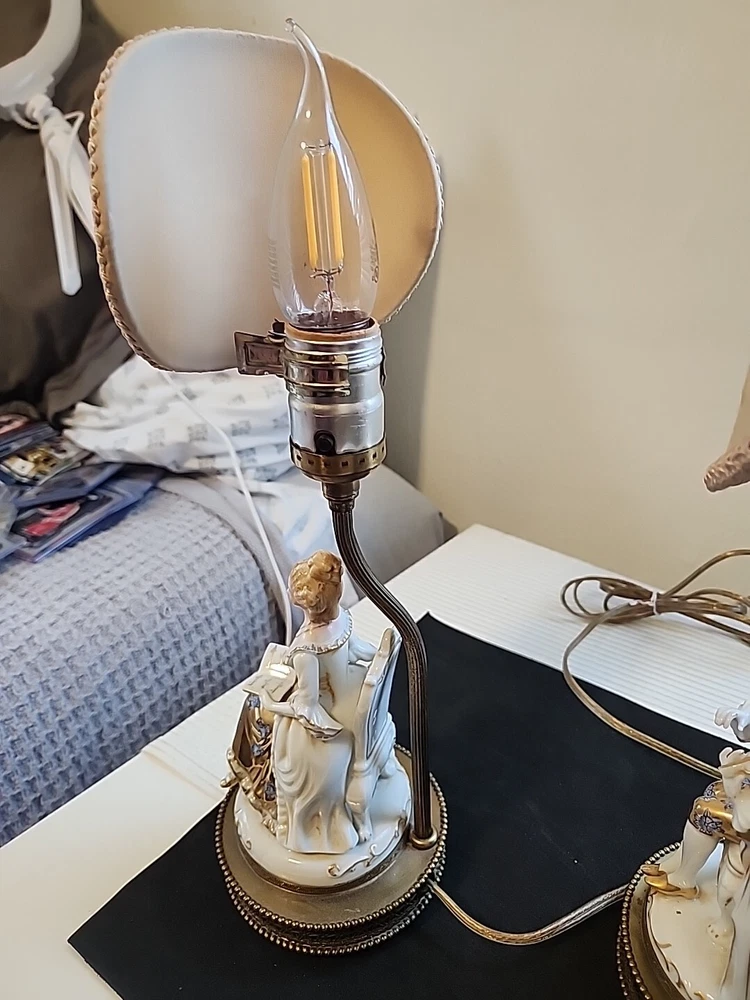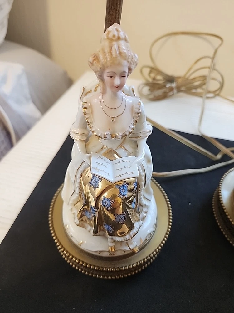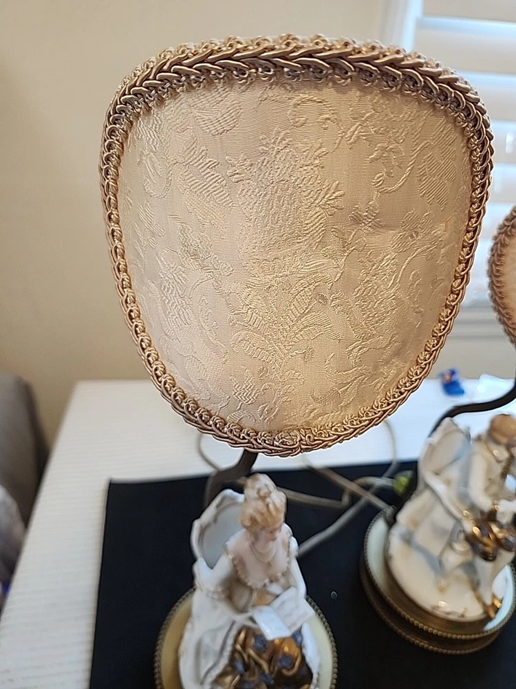 This vintage table lamp set is a stunning and rare find from the early 1900s. The design features a theatre theme, making it a unique addition to any collection. The lamp is perfect for those who appreciate the craftsmanship of the past and desire a one-of-a-kind piece in their home décor. The lamp set is a great conversation starter and will surely be a highlight in any room.