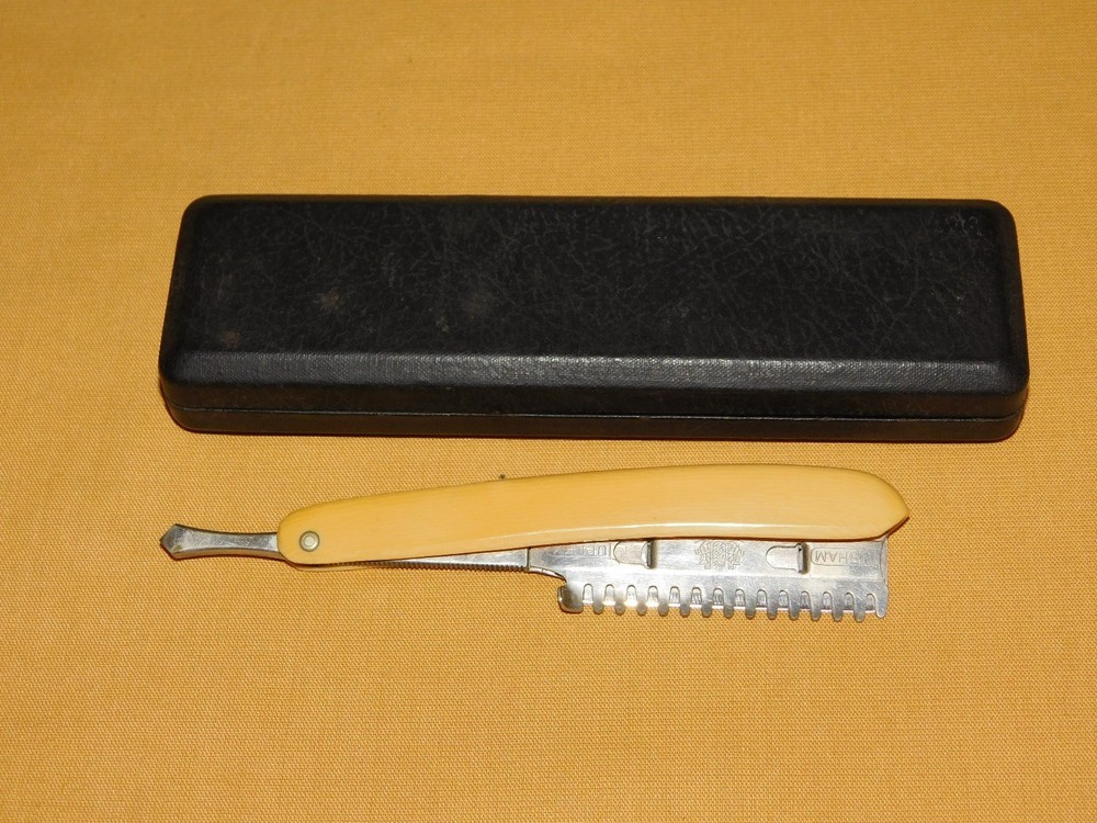 YOU ARE BIDDING ON.... . VINTAGE 1907 URHAM STRAIGHT RAZOR IN ORIGINAL BOX .. . ..SHOW USAGE/AGE WEAR/AGE DISCOLORATION.....P LEASE VIEW PHOTOS FOR CONDITION.***PLEASE E-MAIL IF YOU HAVE A QUESTION OR WANT AN ADDITIONAL PICTURE....PLEASE VISIT MY EBAY STORE FOR ADDITIONAL VINTAGE ITEMS..THANK YOU***RD 9Q-BX1111-xxxx