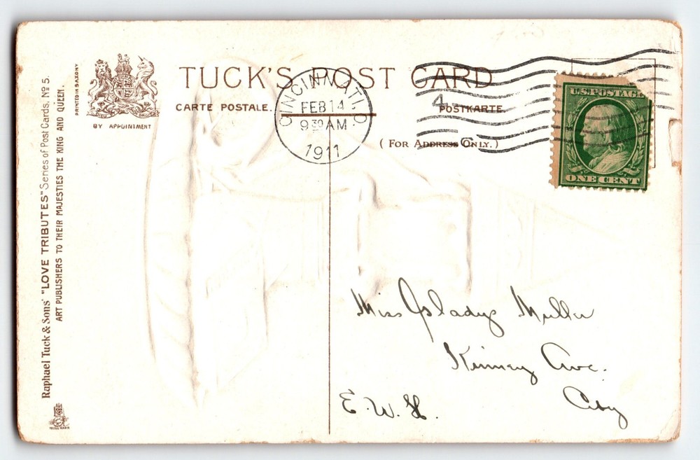 Posted with 1911 cancel. Antique original vintage embossed post card. Has small edge tears, creases, corner dings, and age wear. Stock #val96. Additional postcards are in our store. All post cards are old originals and may or may not have writing on back. Bundle and save by using cart and making single payment. Vintage Postcards Make Great Holiday Gifts.