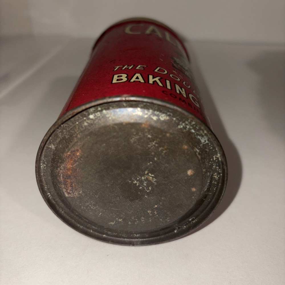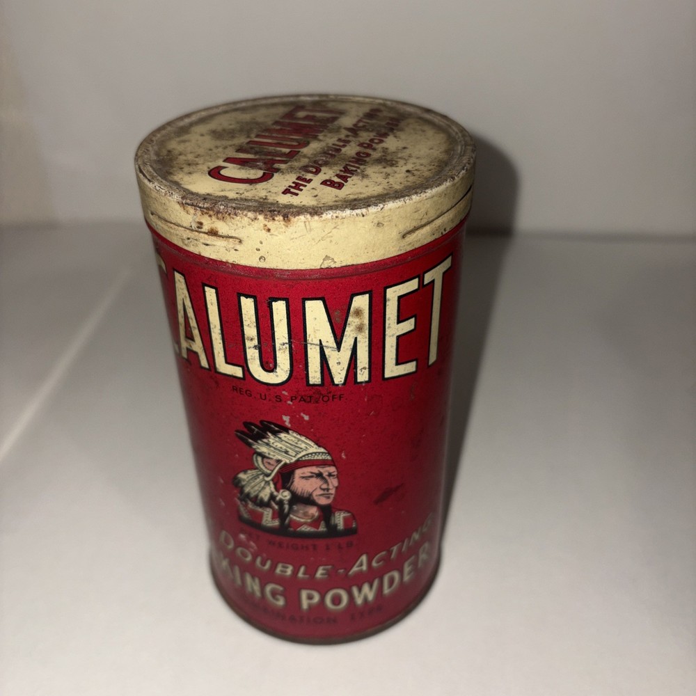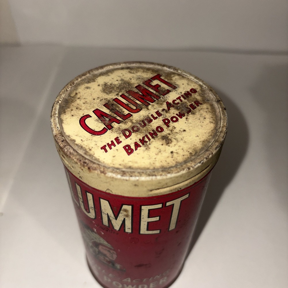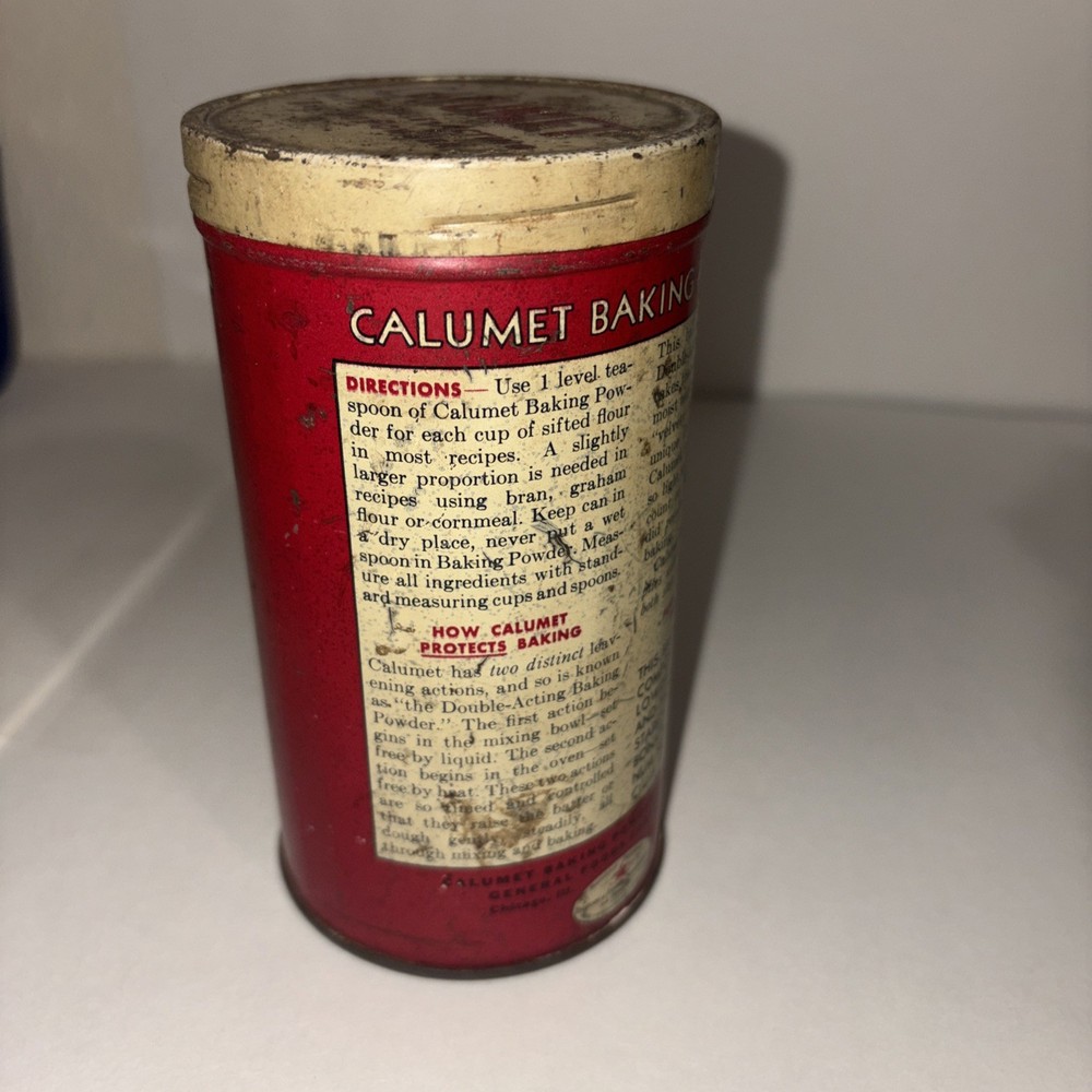 This vintage 1920's Calumet Baking Powder 1 pound tin metal can with lid is a unique collectible item that showcases a piece of American advertising history. The vibrant red color and original design make it a standout piece for anyone interested in vintage bakery memorabilia. This authentic tin can from the 1920's features the iconic Calumet branding and is a nostalgic reminder of a bygone era in baking and advertising. There are visible signs of wear. Please see pictures for condition.