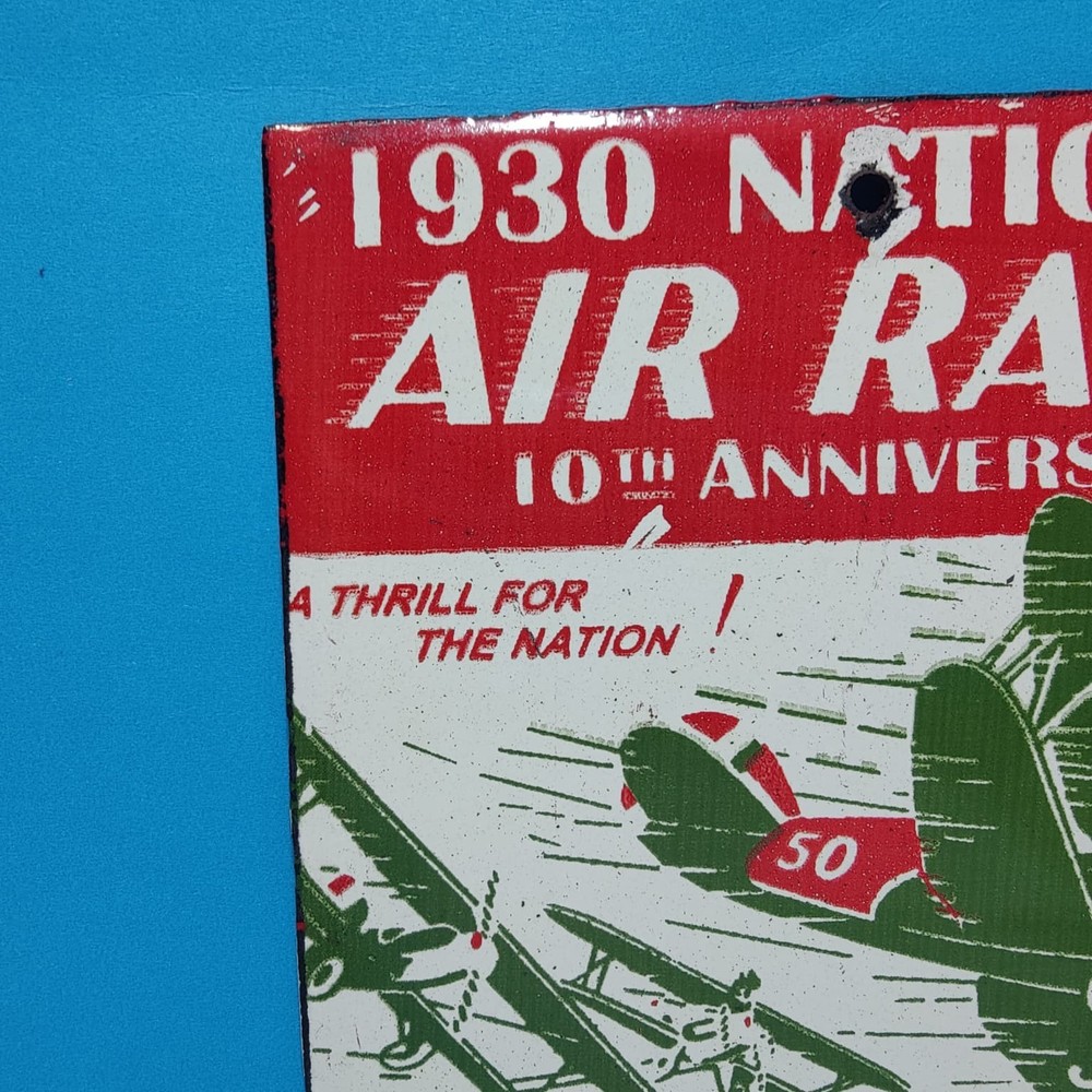 The Vintage 1930 AIR RACES Reynolds Chicago Porcelain Enamel Metal sign measures 7" x 5" inches and originates from the United States. This collectible aviation piece showcases a piece of history from the era of air racing in the 1930s, featuring the iconic AIR RACES design by Reynolds & Co. of Chicago. The porcelain enamel finish adds a touch of nostalgia and authenticity to this vintage sign, making it a desirable piece for aviation and transportation enthusiasts alike. * Kindly take a close look at all photos - they show the exact vintage sign you'll receive. What you see is truly what you get. * Carefully packed to protect the signs condition and shipped securely with USPS Ground Advantage