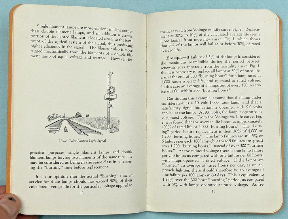 Instruction Pamphlet U-5037 Life, Installation And Replacement Of Railway Light Signal Lamps, April, 1935. Union Switch & Signal Co., Swissvale, PA. Illustrated. 32pg. Note: This item will be properly packed.