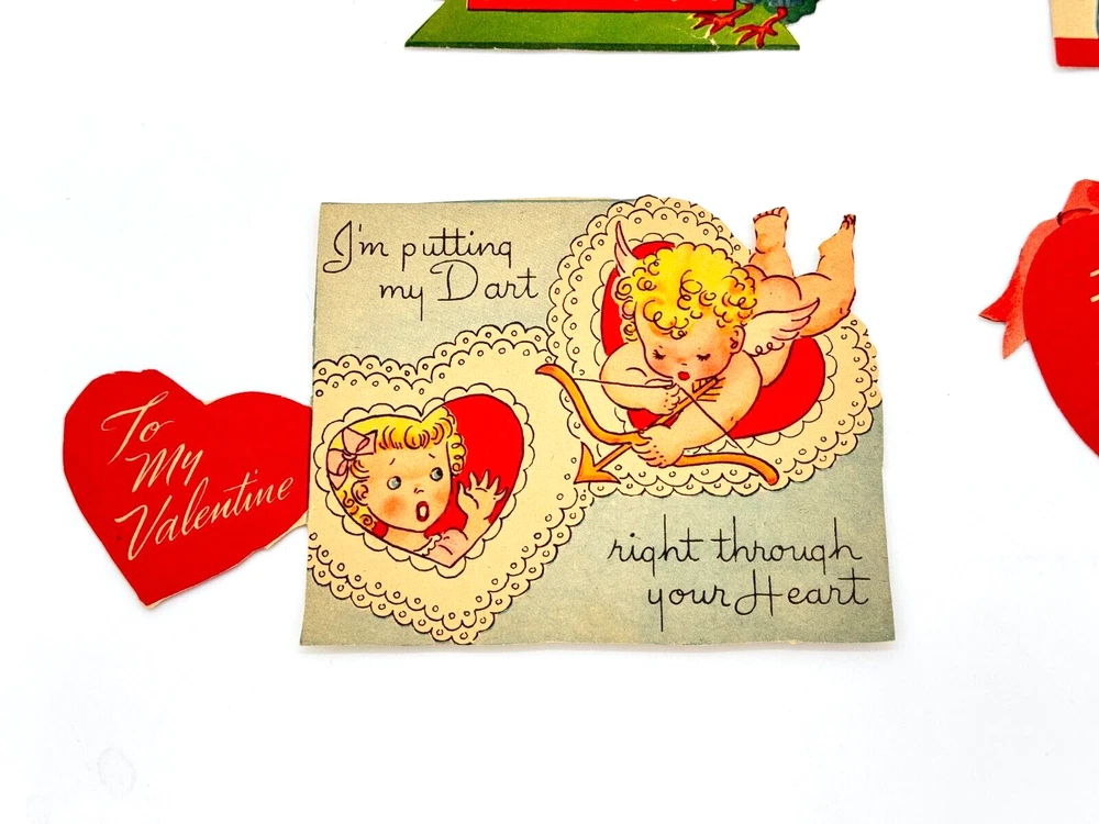 Vintage 1940s & 1950s Valentines Cards - Used Lot of 11 For Crafting, Scrapbooking, and/or Collecting Range of height is 3.75"-5"T Thank you for supporting my business! Note about all used/vintage items: They are sold in used, pre-owned condition. Used, vintage, and antique items by nature have some wear, imperfections and signs of use, age and time. Please examine the photos carefully. I pack your items like I expect them to be drop kicked aka with loads of TLC I am a zero waste shipper. Most packing materials are sourced from my local community. Packing peanuts will always be compostable. If you need an invoice printed please let me know and I will gladly provide it. GL2