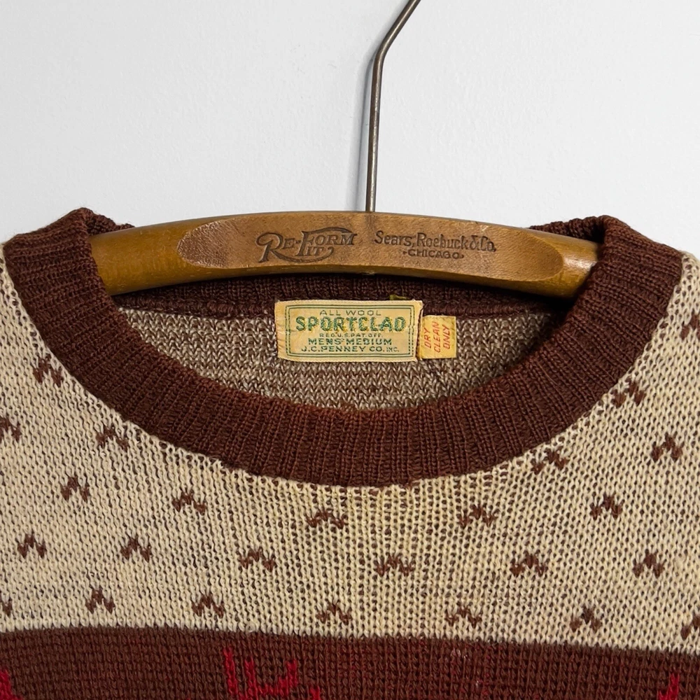 Recommended size: Small/Medium Chest: 19" | Length: 23" Tag: JCPenney Sportclad Material: All Wool Has a leather patch added on the left elbow for reinforcement. *Please expect normal signs of wear and use as this item is in vintage condition (20+ years old). All sales final.