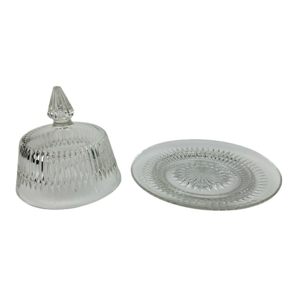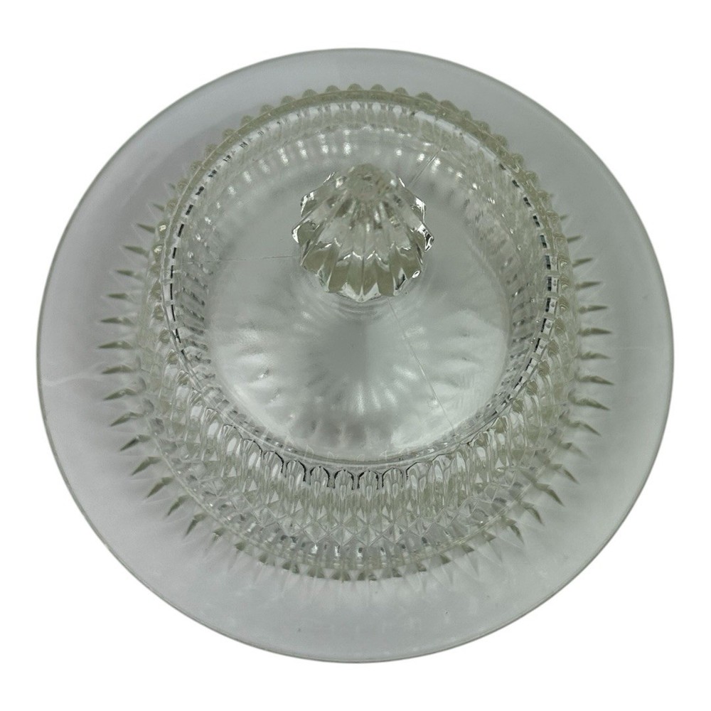 Vintage 1940s Jeannette Glass Anniversary Clear Covered Butter Dish Condition as shown in the photos -*** please note small chip in the tip as shown in the photos*** 6.5” diameter 5.5” tall 2761