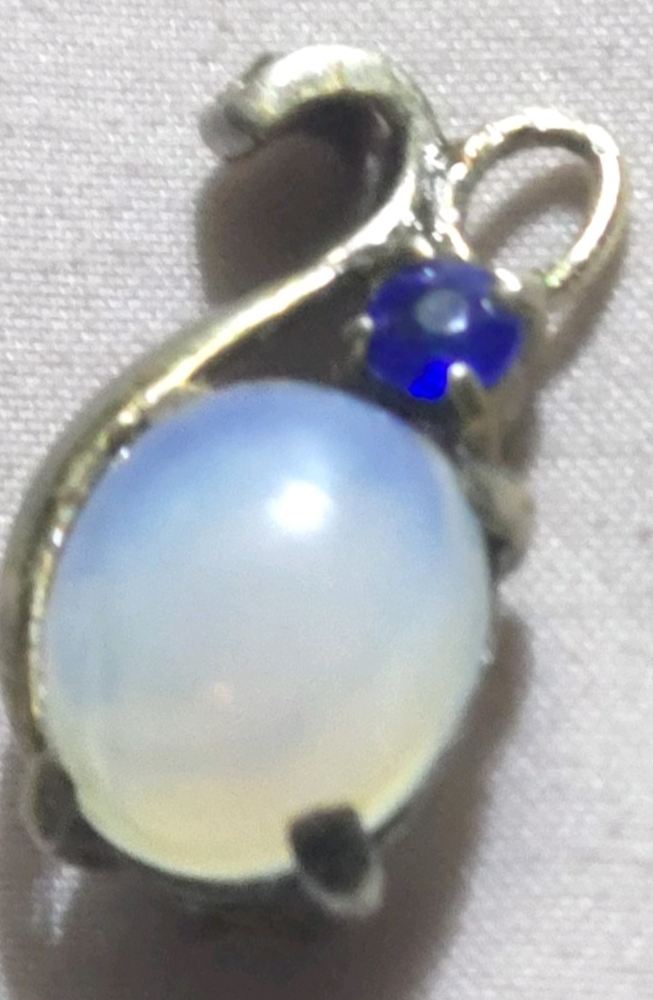Patent No 143989 The product is a vintage Alfred Phillippe Trifari 1946 Sterling Jelly Belly Moonstone Pendant, measuring 1 inch in length. It is signed by Trifari and made of sterling silver with a prong setting style. The main stone is a white/colorless moonstone in a cabochon shape. This pendant is a stunning piece of vintage jewelry for women, with a classic and elegant design that showcases the beauty of the moonstone gemstone.
