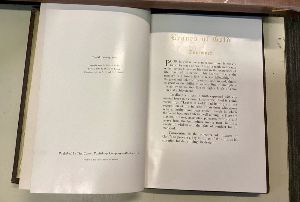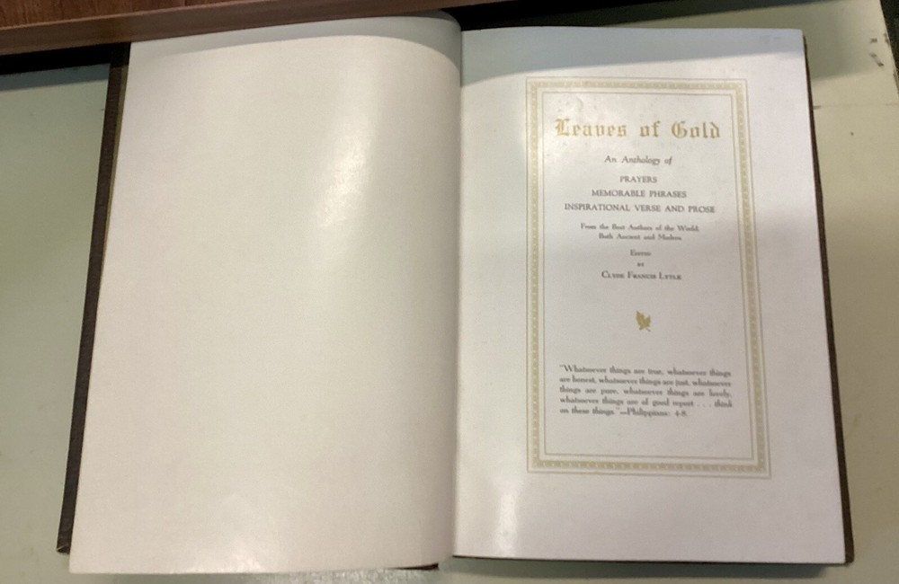HomeVintage 1947 Leather Bound Leaves of Gold Prayer Anthology Inspirational Book