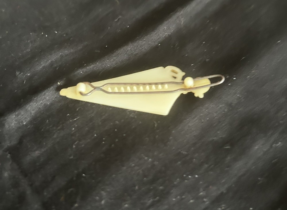 This vintage 1950's hair clip barrette features a unique design with an umbrella-shaped duck handle. The clip is made of plastic and metal in a beige color, perfect for adding a charming retro touch to various occasions such as travel, weddings, parties, casual outings, or formal events. Suitable for all hair types, this 1950's inspired hair accessory is a stylish addition to any woman's collection, offering a nostalgic flair reminiscent of mid-century fashion trends. Measures 2 1/2"