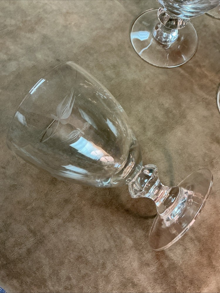 These date to 1954 and are the cut rosebud pattern by Heisey, each of these ice tea stems measures 3-1/2” X 5” and all six are in good condition