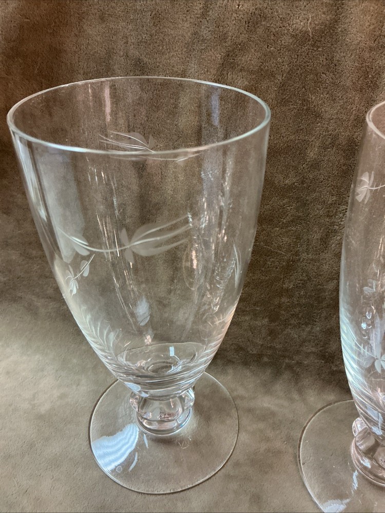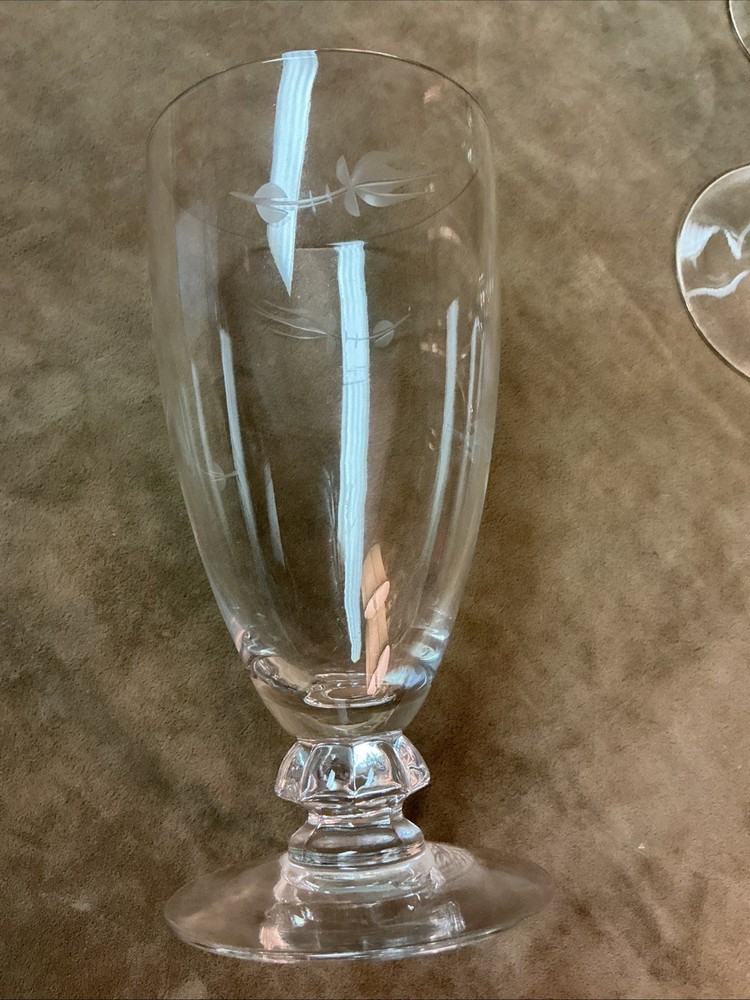 Vintage 1950s Heisey Clear glass rosebud cut iced Water Goblet Stem Lot Of 6