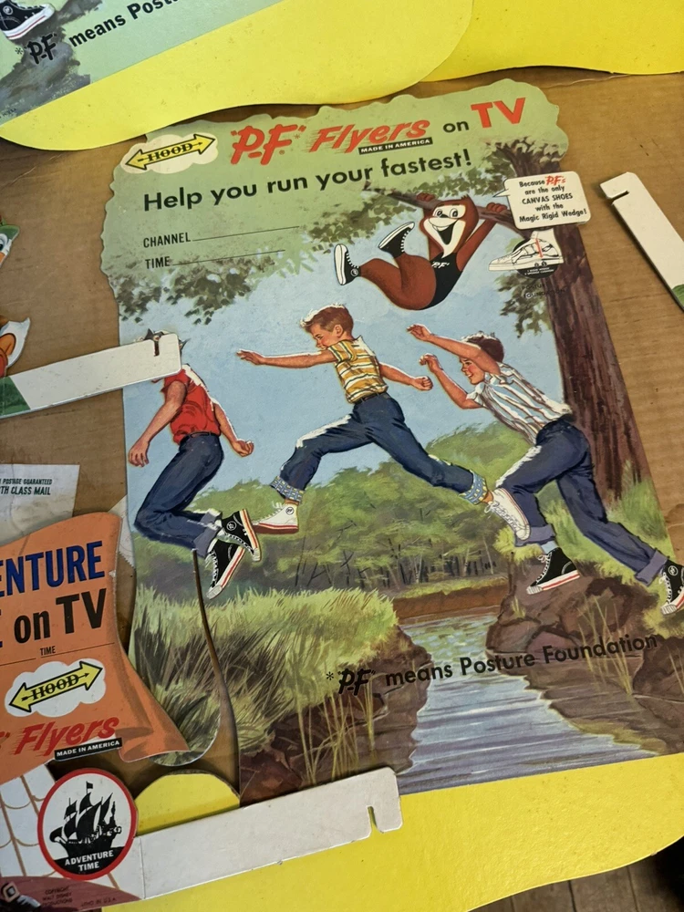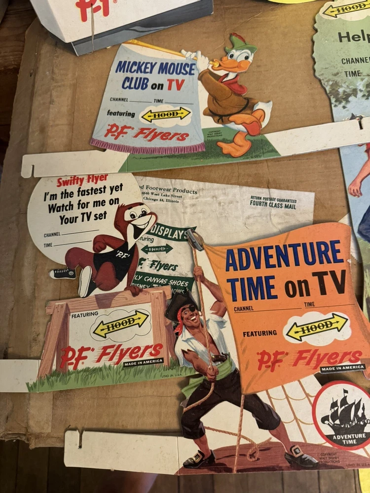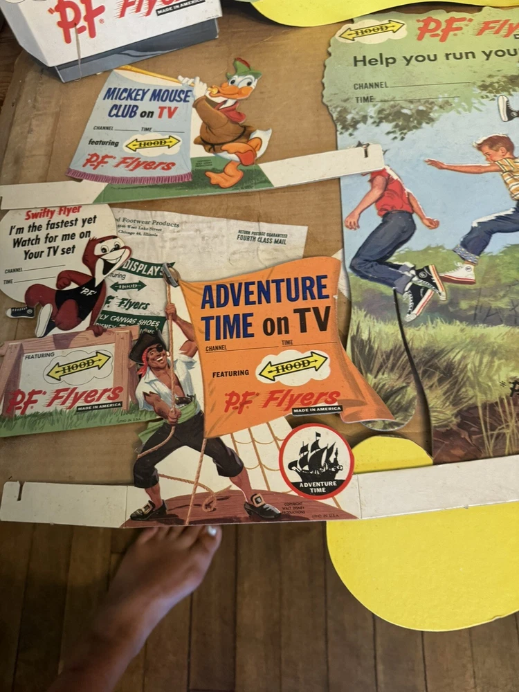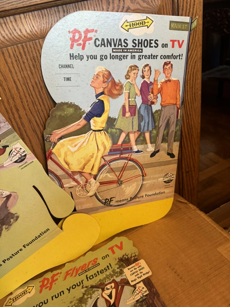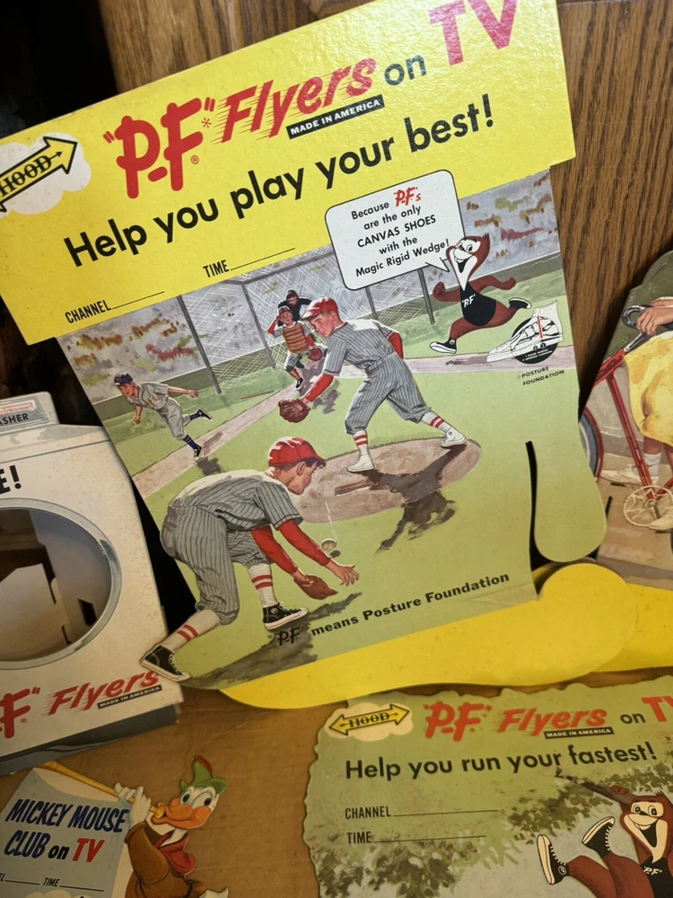 Here's a vintage 1950s PF FLYERS sneakers store display sign that will add a touch of nostalgia to your collection. This stand-like sign features the iconic PF FLYERS brand and is an original piece from the United States. The sign's theme is shoes, and it is a perfect addition to any shoe-themed collection. The sign is in great shape and is a unique piece that will surely catch the eye of any collector. It is a perfect way to showcase your love for vintage shoes. This item is a must-have for any sneaker enthusiast and is a rare find. Don't miss out on the opportunity to add this original PF FLYERS store display sign to your collection. Lots of displays The large display is over 3 feet tall! Part of a collectors/dealers estate. Thousands of antiques and collectibles to sell. Not a pet free home, no extra charge for hair, we either bought it that way or furnished it ourselves. International sales through global shipping program only. Heavier larger boxes may be shipped Fed Ex or UPS to save on shipping costs. USPS no longer ships any book or magazine that have advertising thru media Mail, sorry for this inconvenience. RETURNS: We accept ANY item back within 30 days of the original purchase date for a full refund. All returns must come back in the same condition they were shipped out and arrived in. Buyer pays return shipping costs. RETURNS: Due to the nature of antiques and collectibles some imperfections are a natural part of the beauty of these objects. We describe as good as possible. All our items are very good quality. We do our best to pack carefully, but accidents happen! FEEDBACK: We aim to earn positive 5 star feedback for every item. If you are happy with your purchase, please take a minute to leave a positive 5 star feedback. If you have any issues with your purchase, please contact us directly using ebays message service to resolve the issue so that we can earn your positive 5 star feedback. We will be sure to do the same for you. Thank you for viewing my listing. Have a blessed day
