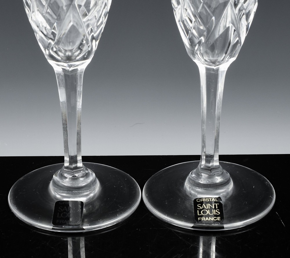 Note To all Buyers. Shipping is usually done within 1 Full Business Day Of Payment. All shipping is provided a tracking number, and regardless of location arrives usually between 2-7 Business days, please ignore the estimated time Ebay displays for you. DESCRIPTION : Here we are offering some fine glasses up for sale. Some very fine examples here, made by the world collectible St Louis Glass company, known for their top quality and stunning designs. Made from superb Crystal Glass, in the rare pattern known as Chantilly Clear, which was produced in the 1950s and has since been Retired. These Fluted Champagne Flutes are a rare find. As seen in the last photo they are commonly sold on replacements for $99 EACH! Note the photo of the marking is of the best example of the set, the glass you may receive may not be as clear as the marking seen in the photos. These glasses are priced per piece, so the price you see is for one Glass. If you are interested in more then one I am happy to provide a discount. As seen we have many different sizes in this pattern, please check them out and save greatly on group orders with combined shipping pricing. Please reach out with any questions! CONDITION : Each glass is in very fine condition for its age, with no chips, cracks or repairs. Each glass will be completely hand washed before shipping to arrive fresh for the new owners! Note they come with the original stickers as seen with some stickers being in better condition then others. The one you get, is the one you get. MEASUREMENTS : Each glass measures approx. 7-3/8 inches tall, 2 inches wide across the top, and holds about 4oz of your beverage of choice! SHIPPING : We offer combined shipping on orders, therefor the more you order the cheaper the shipping!! We also offer Worldwide Shipping on the vast majority of our stock, please contact us to arrange your worldwide and specific shipping needs!