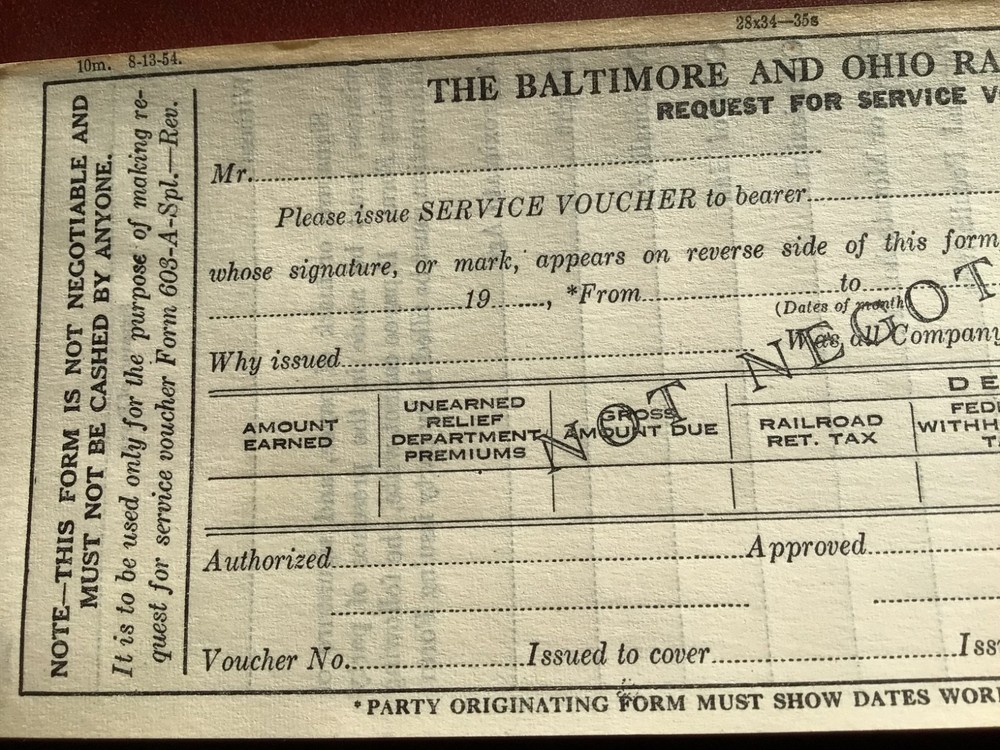 Vintage 1954 Baltimore And Ohio Railroad Service Voucher Tickets Unused Pad