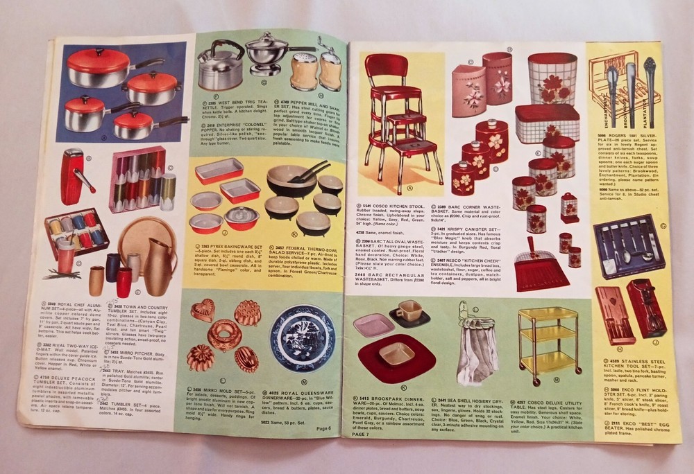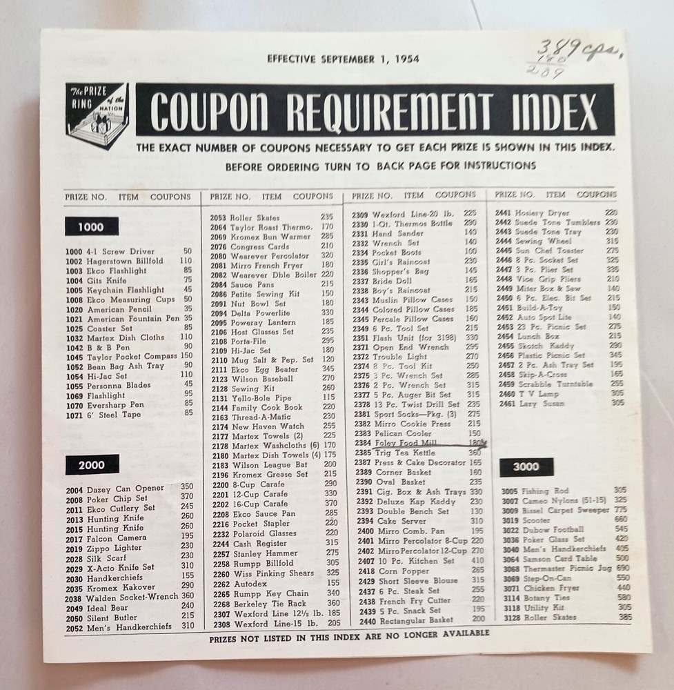 Color and Black and white photos (see sample pages in photos). Lots of bends and a few small tears at edges, age tanned and name on back cover marks on coupon list and throughout.