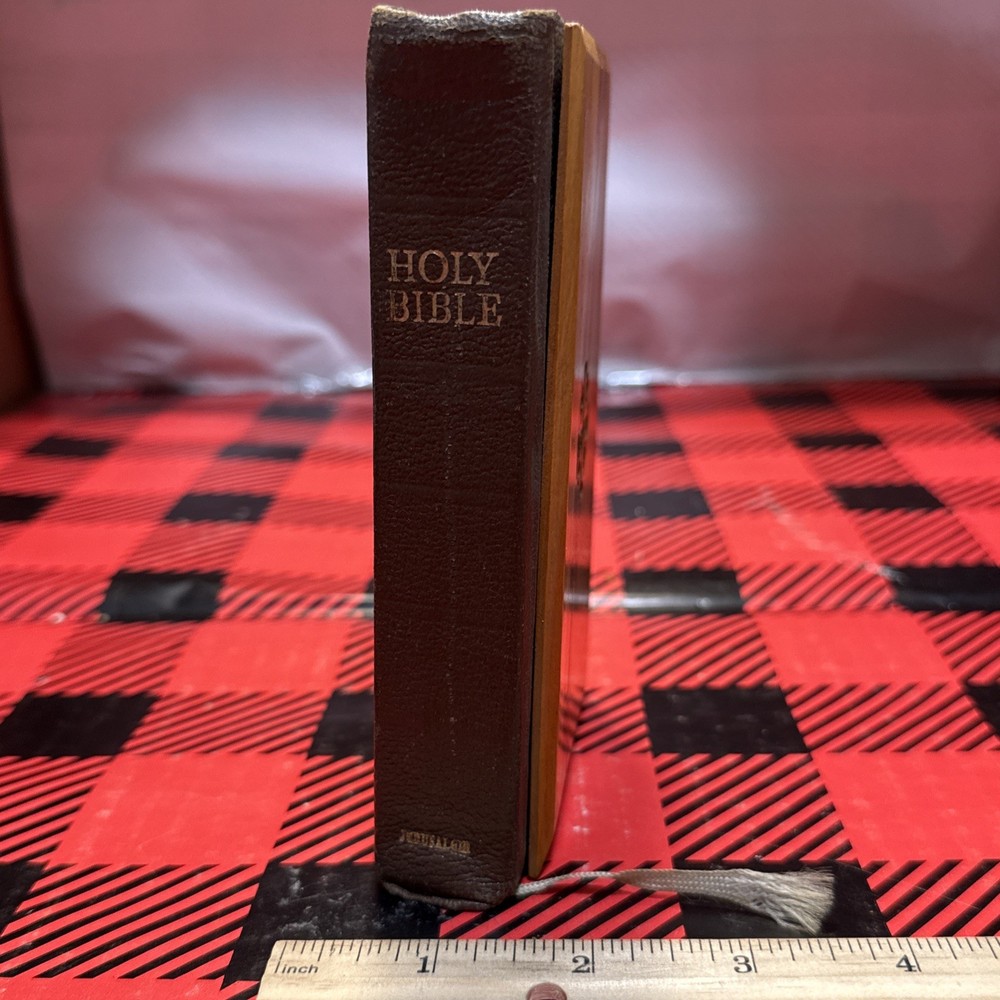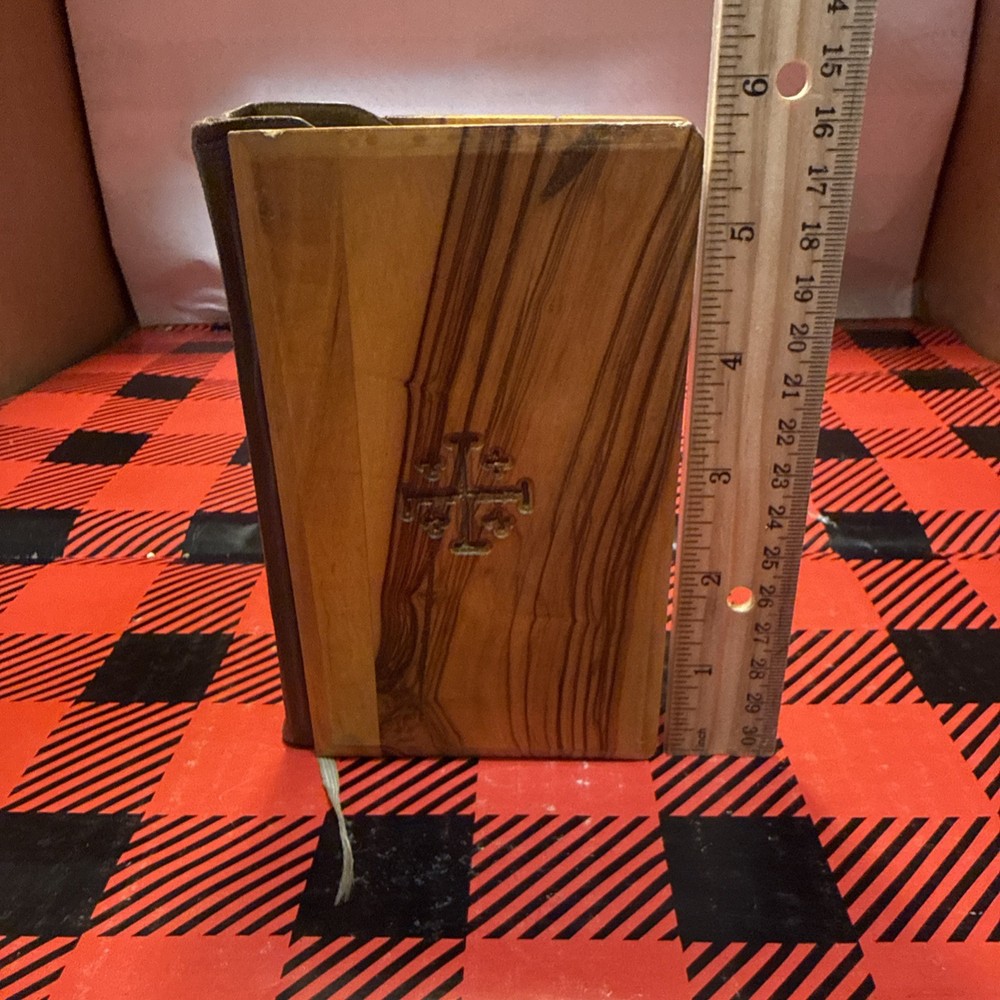 The Vintage 1958 Jerusalem Pocket Bible features a compact pocket size with a beautiful olive wood cover, making it an ideal companion for young adults and adults interested in religious and spiritual topics. This King James Version Bible, published by British Library Publishing, contains the New Testament and is a classic piece of nonfiction historical narrative. With its compact format and unique features, this Bible is a timeless piece that captures the essence of biblical scripture from the 1950s era. See pics for wear