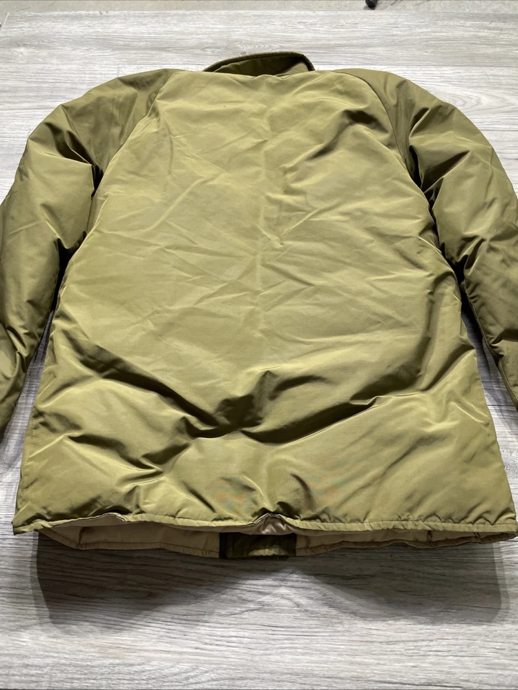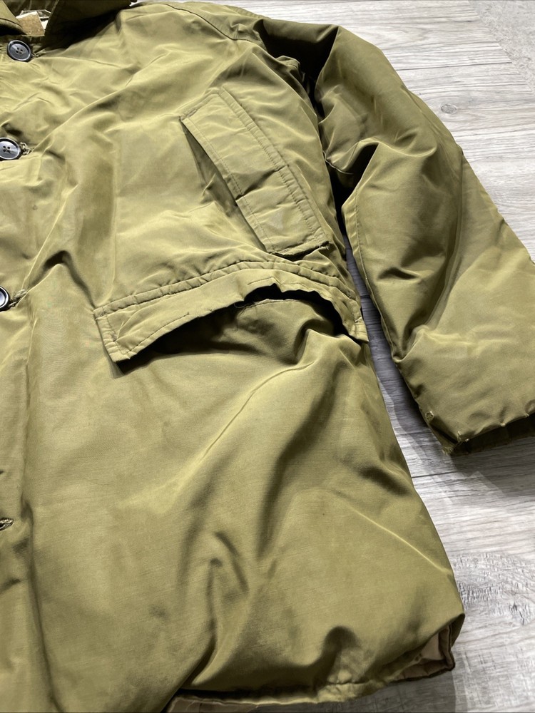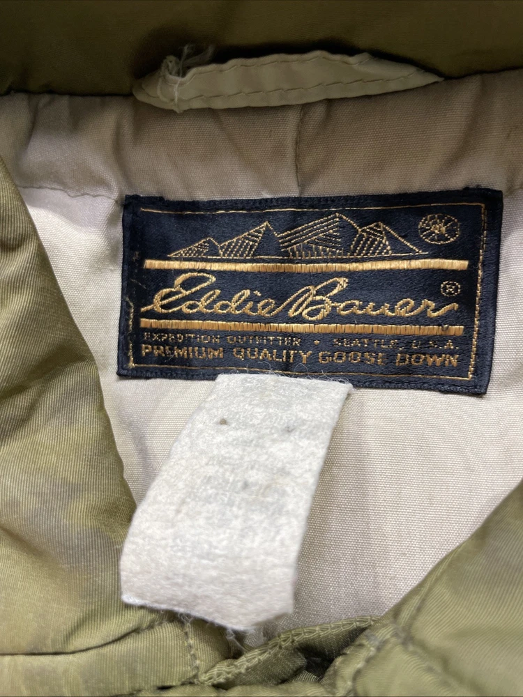 Please refer to pictures for details flaws and measurments This True Vintage 1960s/70s Eddie Bauer Goose Down Jacket is a stylish and practical outerwear piece for men. Made with a durable nylon outer shell and filled with warm down insulation, this puffer jacket features a classic button-down collar and comes in a size XL with a regular fit. The green color adds a retro touch to the timeless design, making it a versatile addition to any wardrobe. With its vintage charm and quality construction, this Eddie Bauer jacket is sure to keep you warm and stylish in colder weather.