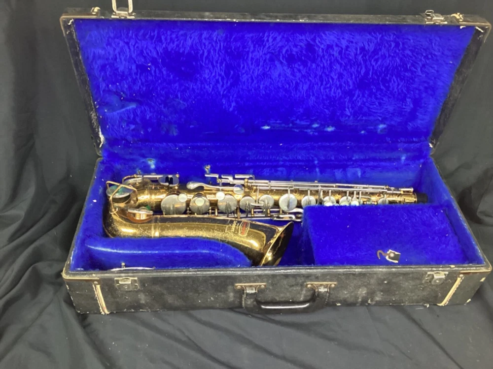 Vintage Selmer Bundy Alto Sax (likely 1960's?). Will need a lot of work to be playable again. Good to use for spare parts or if interested in a big repair/restoration project. Includes Hard Case