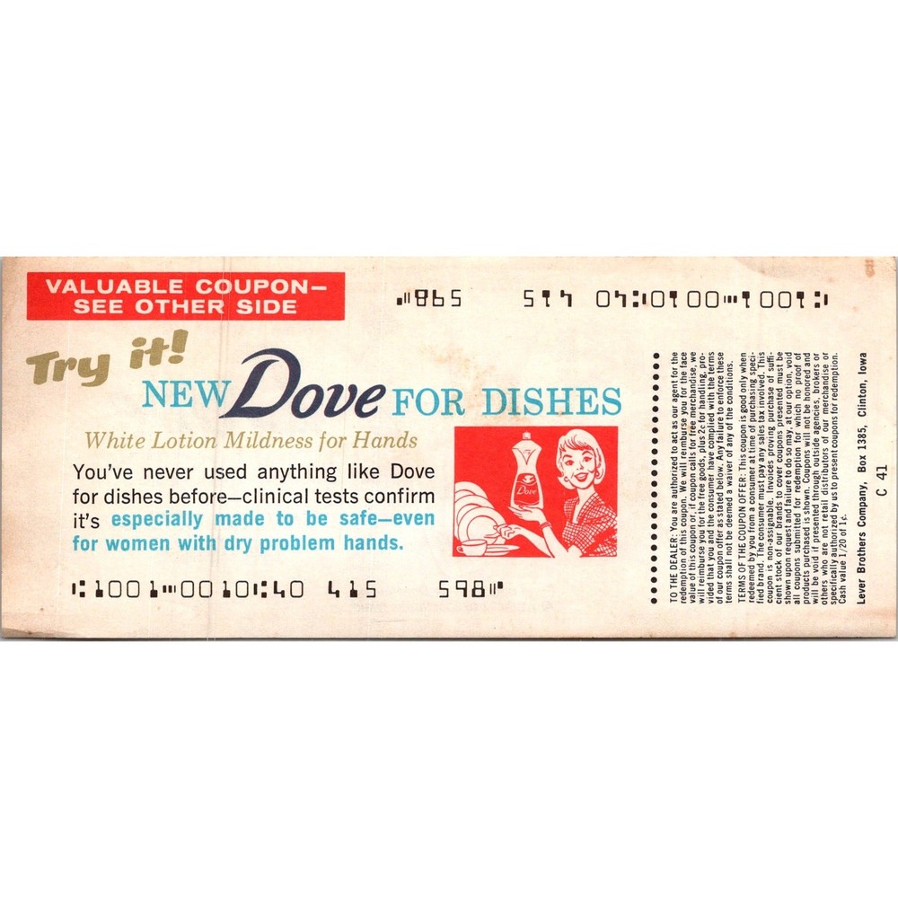 If you need an exact measurement please ask before ordering. See pics for condition. New Dove For Dishes White Lotions for Hands 1960s Original Retro Coupon STK3-ZC1