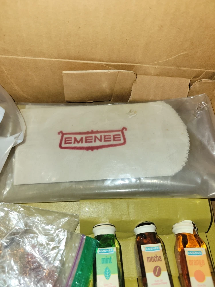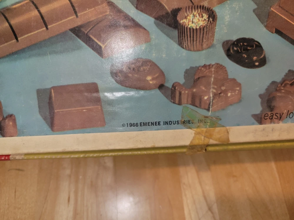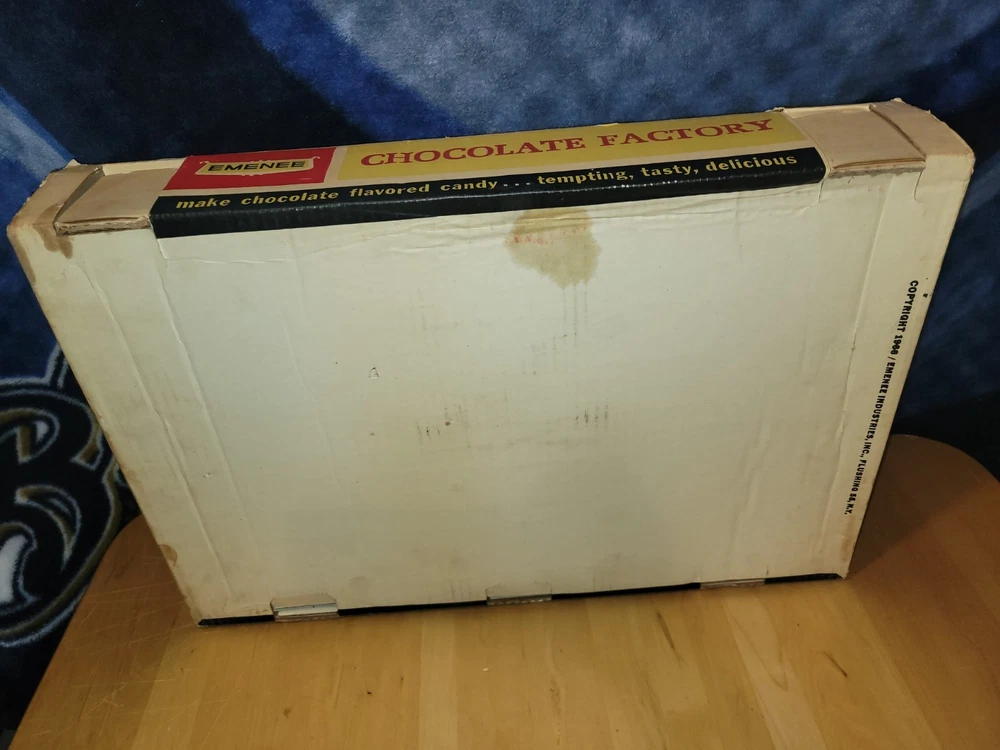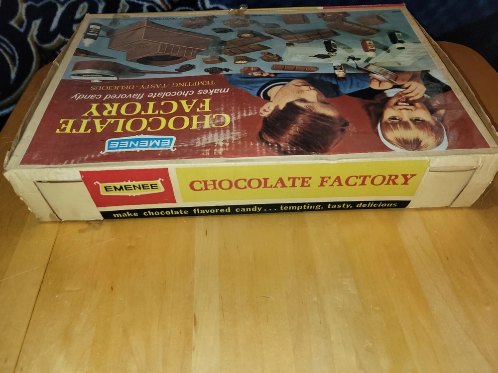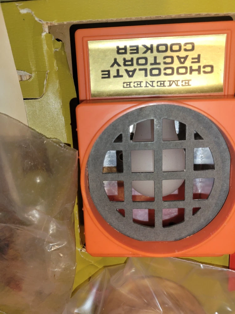This vintage EMENEE Chocolate Factory is such a cool find! The unit works perfectly and looks amazing with its original box and instructions—nearly complete. The included sealed bag is a fun time capsule, though I wouldn’t recommend tasting it. It’s a fantastic display piece that brings back nostalgic vibes. Happy to answer any questions—thanks for the smooth transaction!