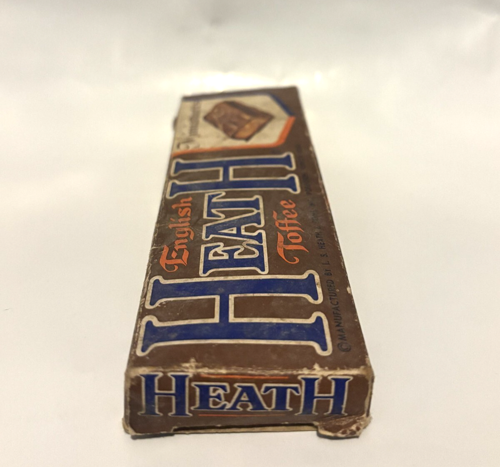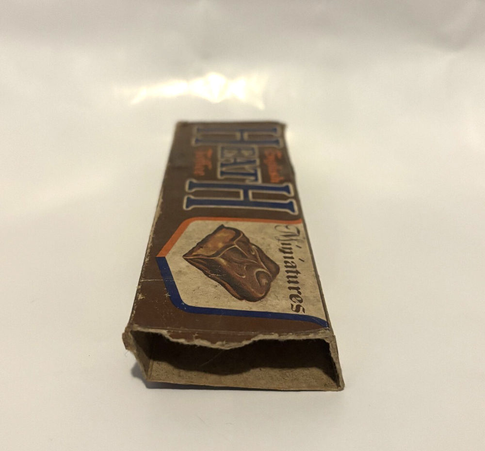 Very rare vintage 1960’s empty Heath Bar Miniatures Candy Bar Box. Item is in decent condition. One of the end flaps is torn off where it would've been opened. Colors still really pop on it. Found under a seat in an abandoned movie theatre. Won't ever come across one of these again. A true collectors item.
