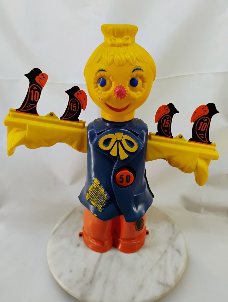 The Ideal Scarecrow Target Game from the 1960s is a vintage plastic toy that offers a unique play experience. With no gun and no hat, players can still enjoy the nostalgic charm of targeting a scarecrow in this classic game. Perfect for collectors or those looking to add a touch of retro fun to their toy collection, this Ideal game is a fun and entertaining addition to any play set. One of the birds is missing a small piece of its body this can be seen in the photos. Thank you for visiting my listing today and thank you for your interest in this item! My goal is to have a pleasant transaction resulting in a satisfied customer. I hope any transaction between us leaves you with a feeling of confidence knowing you can trust me and the items I offer here. *Most if not all my listings are set to accept offers. Feel free to send an offer and I will be happy to consider it!! *Please contact me with any questions or concerns and I will be happy to help. *Always examine the photos carefully, and if in doubt, email me with any questions you may have. *Please note that condition statements are offered as a guide only. They will always be somewhat subjective and reflect our opinion, which may not necessarily agree with someone else's opinion. PLEASE READ: I aim to please and I want my buyers to have a positive transaction with me. If you have questions, concerns, or special requests related to any of my items I hope you will contact me so we can work them out to your satisfaction. I sell my items to give you a great item at a decent price while making a little profit at the same time. If you feel the item you are interested in is too pricey do not hesitate to send me a fair offer and I will consider it. My goal is to satisfy your needs and mine so both parties can benefit. SHIPPING: If you prefer a different shipping method or company please contact me and I will do all I can to make that happen. If you have concerns or requests about the packaging of your item contact me and I will do all I can to accommodate them. Shipping costs are based on location in each state or country, the costs always differ. After I have received your payment I will ship your item out within 3 business days or less excluding weekends and holidays. BEFORE PURCHASING & BIDDING: **Please see all the pictures. I do not have great photography skills but I try to get the most accurate photos I can. If you are unsure about something you see in a photo contact me so I can do what I am able to answer your concern about the item. **I cannot stress enough that if you have any questions or concerns please contact me before purchasing and bidding. Communication can solve so much. **As a customer myself, I understand the meaning of customer satisfaction and my goal is to have nothing but satisfied customers. If you are not unsatisfied with your purchase I ask that you please contact me so I can take care of your issue. My goal is for you to be 100% satisfied. INTERNATIONAL BUYERS WELCOMED - PLEASE NOTE: I welcome International buyers! Please be aware that any custom/duties/taxes that the parcel might incur once it is out of the USA are the responsibility of the buyer. Please check with your country's customs office to determine what these additional costs will be prior to bidding or buying. Please refer to the eBay Site Map for more information if needed.