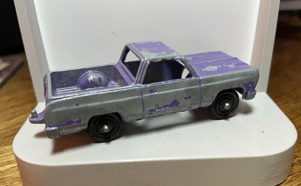 This vintage TootsieToy ERTL American Muscle toy truck is a must-have for collectors. The purple Chevrolet El Camino model is made of durable metal and is in excellent shape for its age. The truck is a 1:64 scale and features detailed aspects, including the color, vehicle make, model, trailer hitch and year of manufacture. This toy is perfect for anyone who loves vintage diecast vehicles and adds a unique touch to any collection.