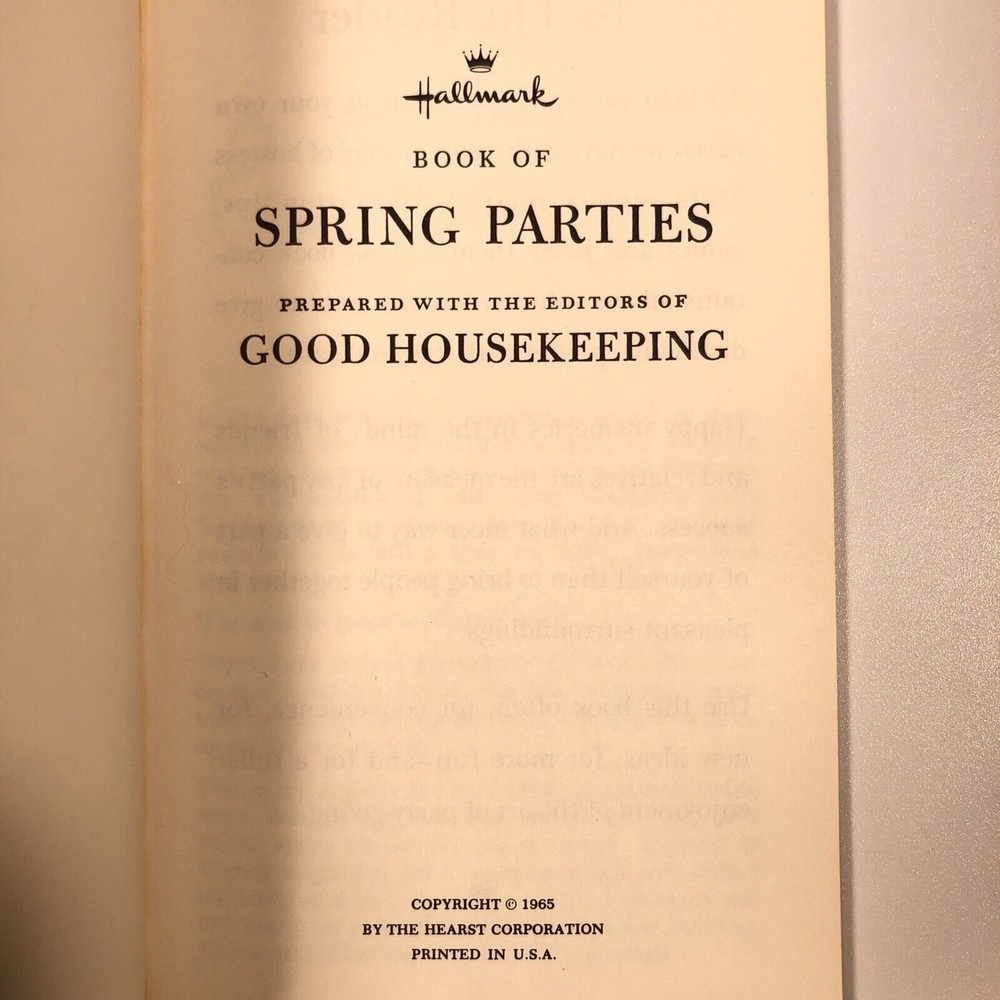 Cook book cookbook rare entertaining manners house parties Hearst corporation printed in USA United States u.s.a. Menus decorations games hostess Book booklet