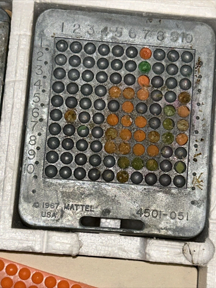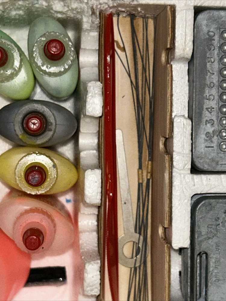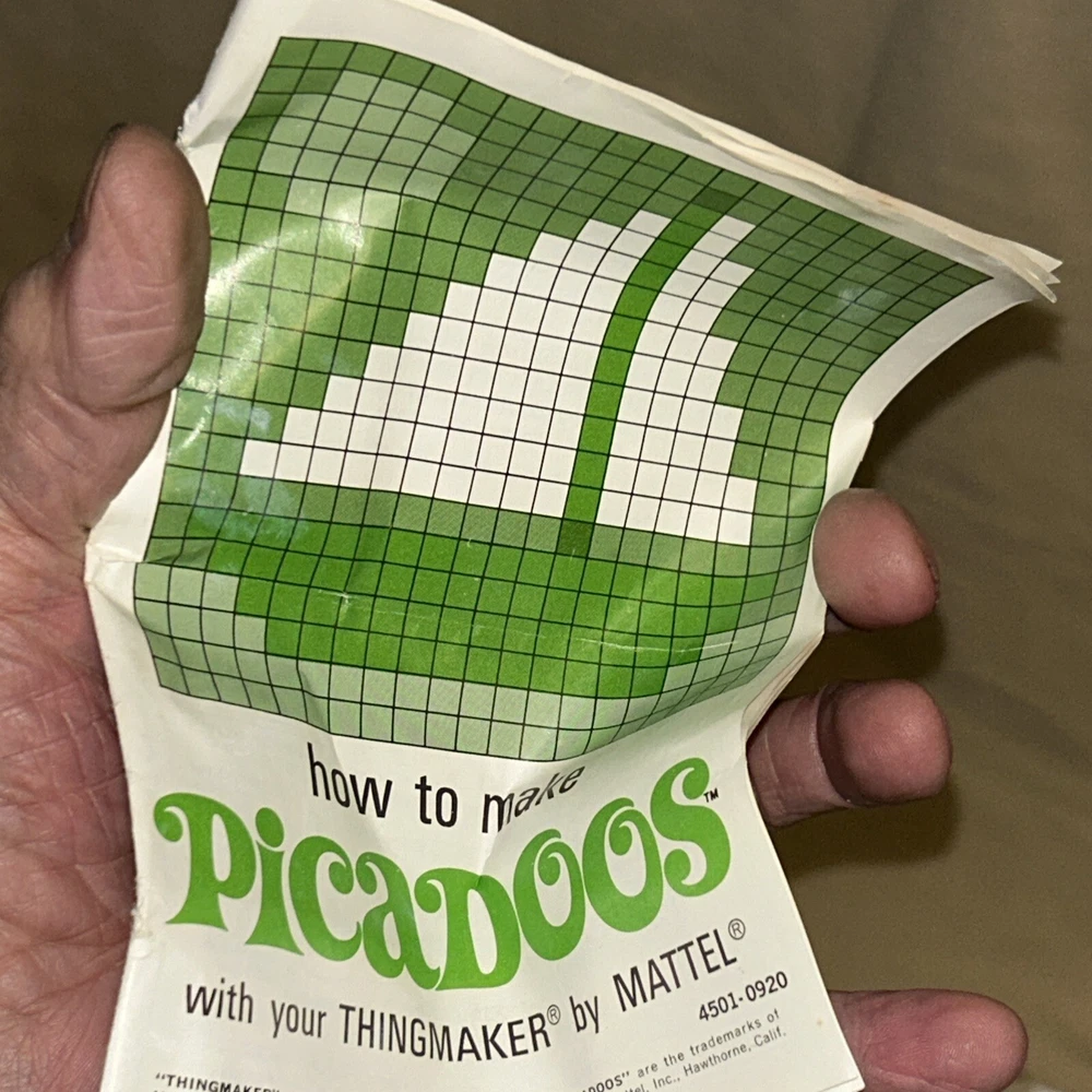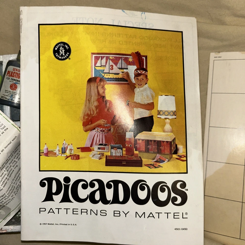 Vintage 1967 Mattel Thingmaker Picadoos Maker Kit in Box with Plastigoop & Molds. Used, includes 6 molds, a couple of tools, wire, and Plasticgoop as seen. All 6 are liquid, not sur how useable, dated 1965 and one dated 1966. Includes cool little catalog, instructions, order form, and patterns as seen. The graph board is stained but I left it in there. The Styrofoam is messy, box lid shows wear, but a nice vintage lot. Please see photos. Please check my other sales.
