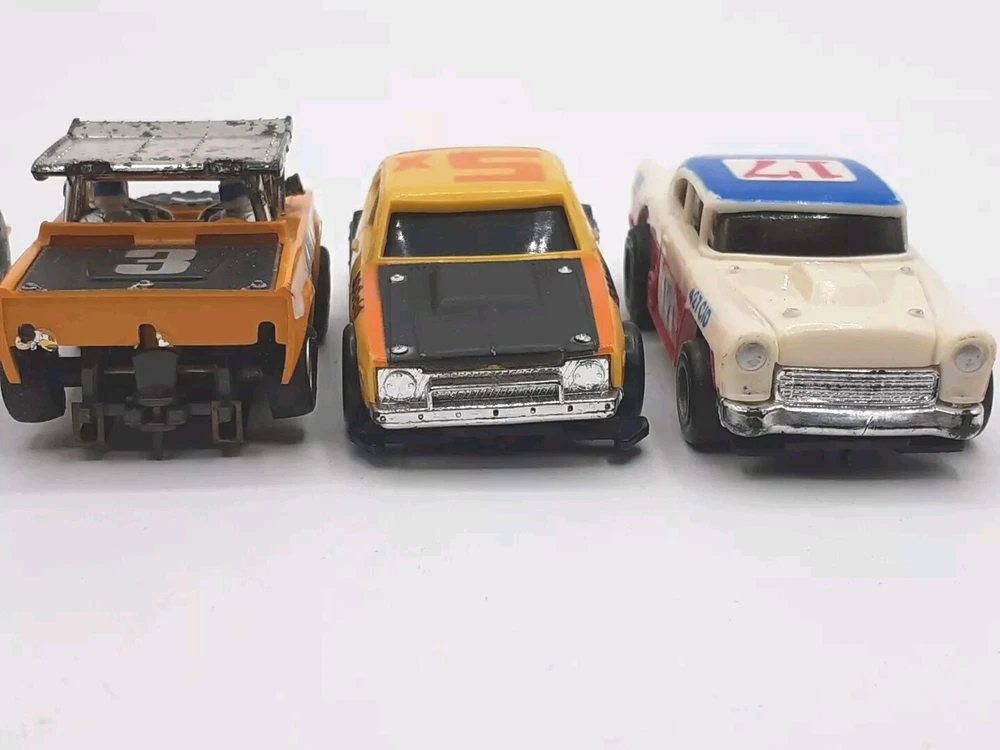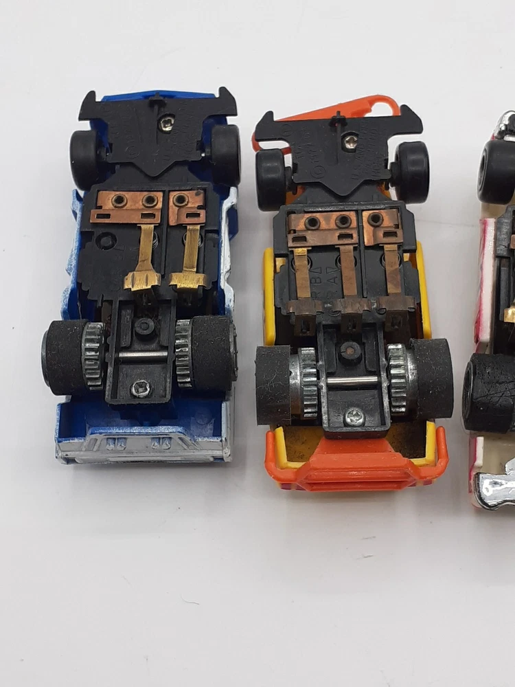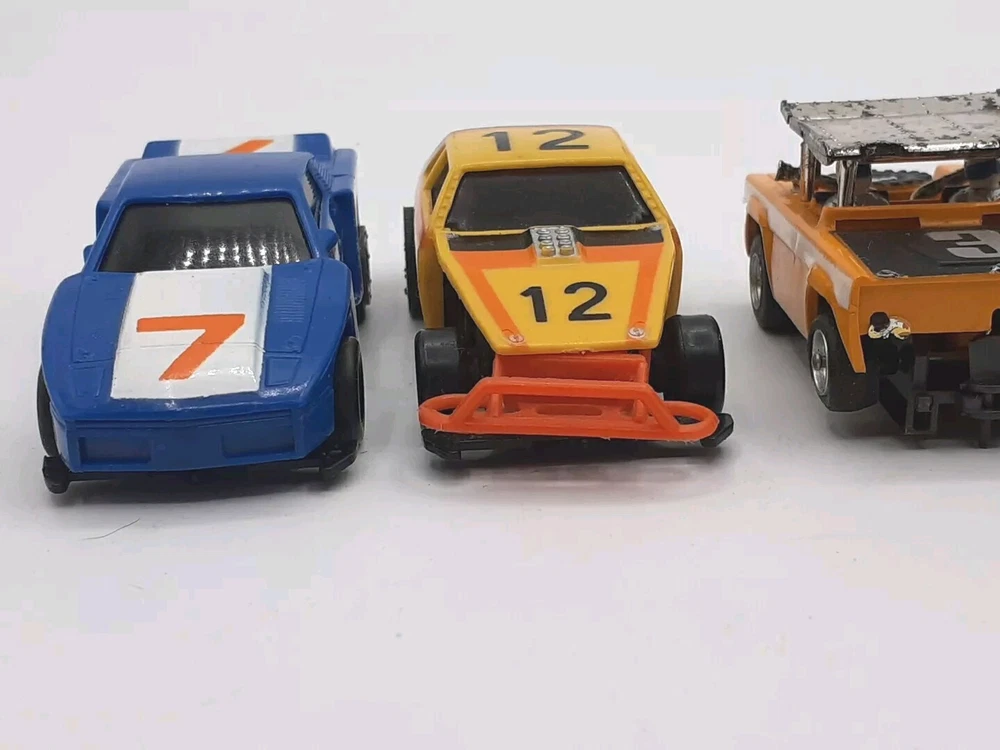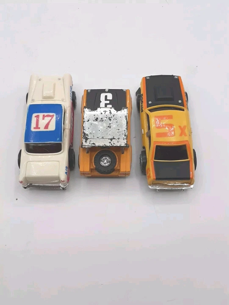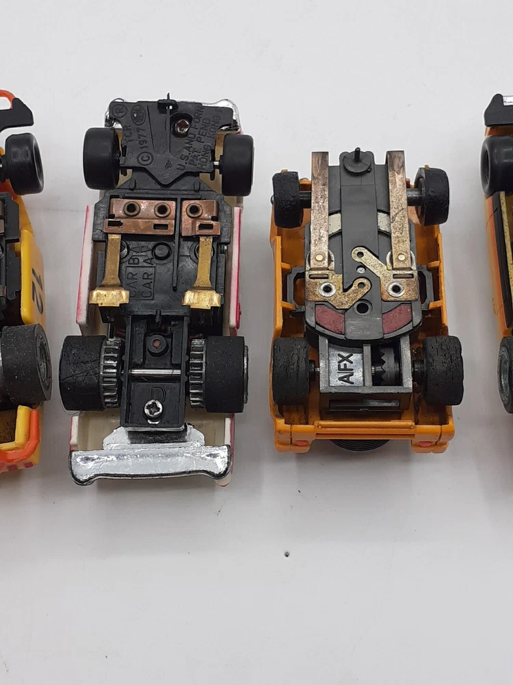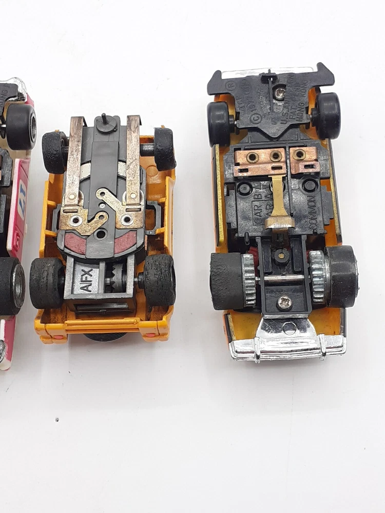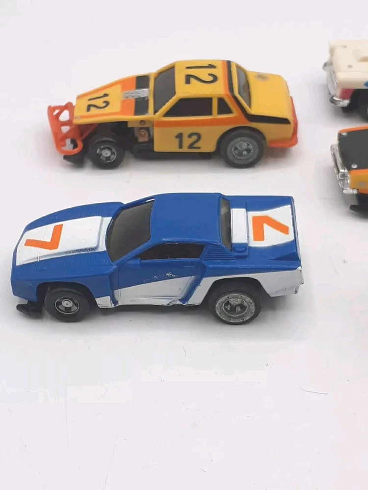 The engines work on all five slots and all with good power. All 5 were 9-Volt tested but not track tested. Whether or not , just assume all five need Rubber and will need to be oiled. No noted damage to any. The ideal race car #12 is missing both exhaust pipes and the Aurora AFX Bronco has paint flaking from the roof. Please view the photos for the best condition description. I do combine shipping and thanks for visiting my store, I certainly appreciate ya!! 👽🦩🛸