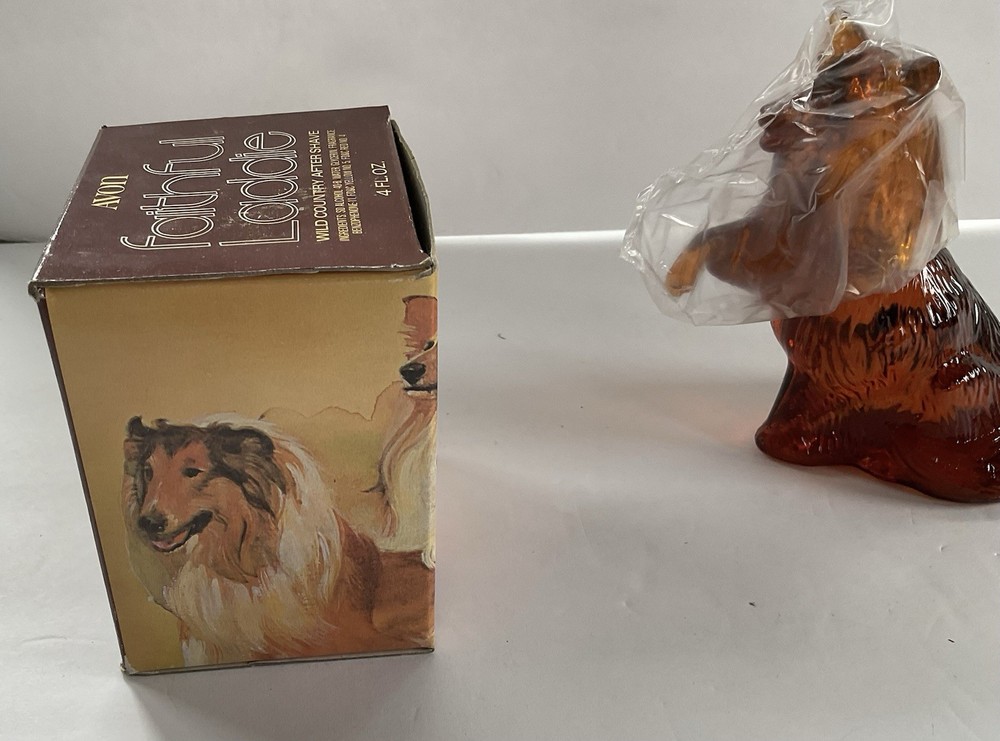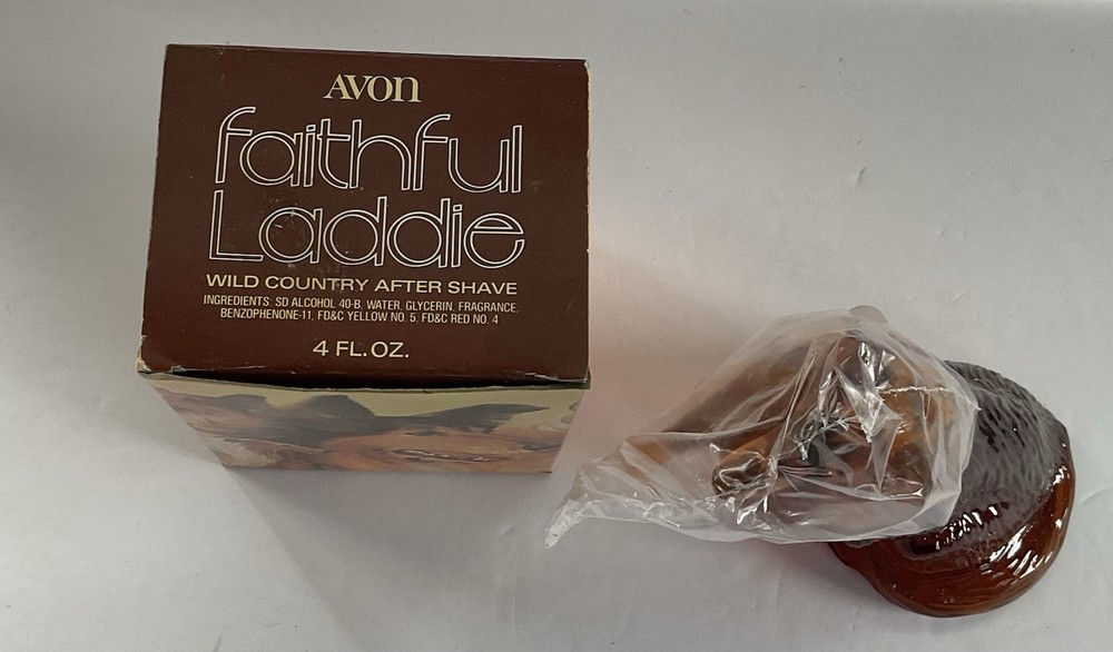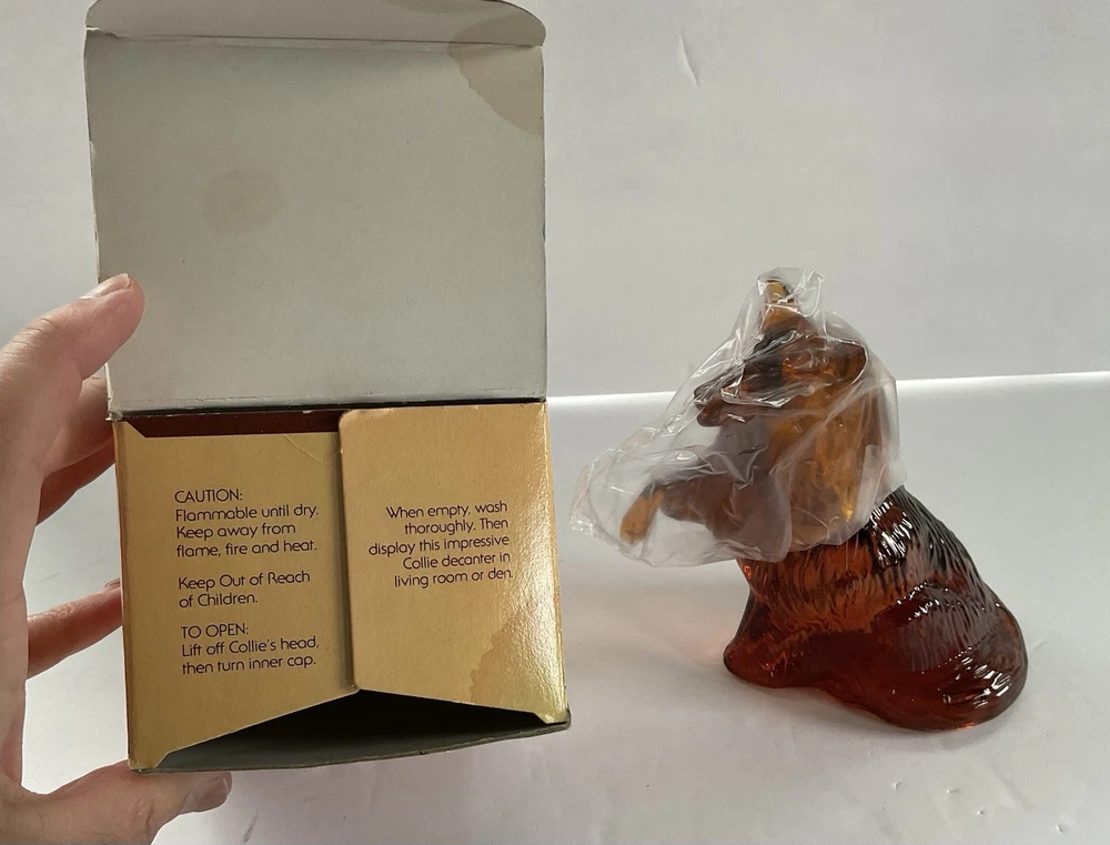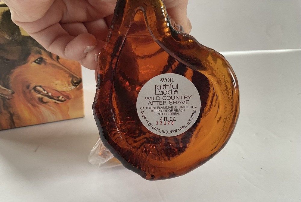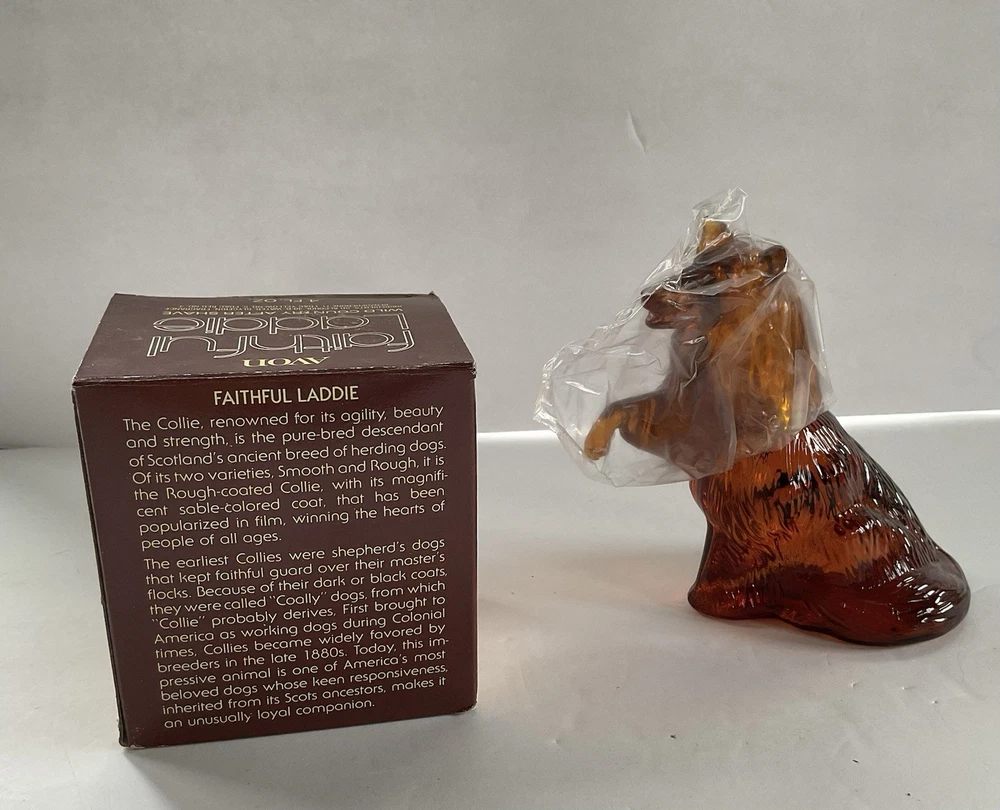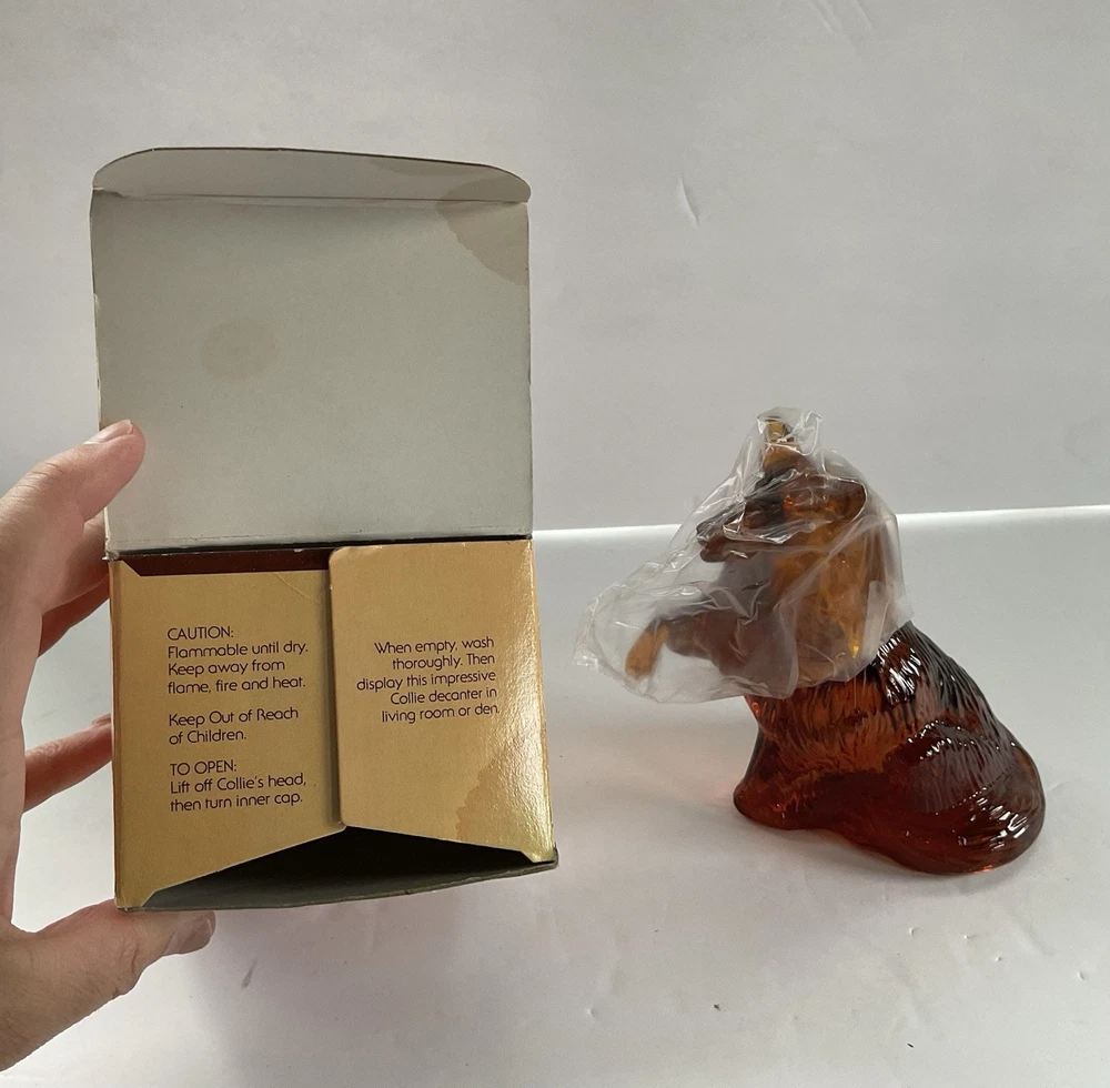 The Vintage 1970's Avon Faithful Laddie 4oz Wild Country After Shave is a unique collectible item shaped like a collie dog, made of glass and plastic materials. This after shave bottle from Avon features a turn lock closure and is packaged in a box, making it a nostalgic piece of 1970s advertising. Perfect for collectors or those looking for a vintage addition to their decor, this animal-themed bottle is a charming and quirky find for teens and adults alike. See pictures for details Shipping next business day via ground service