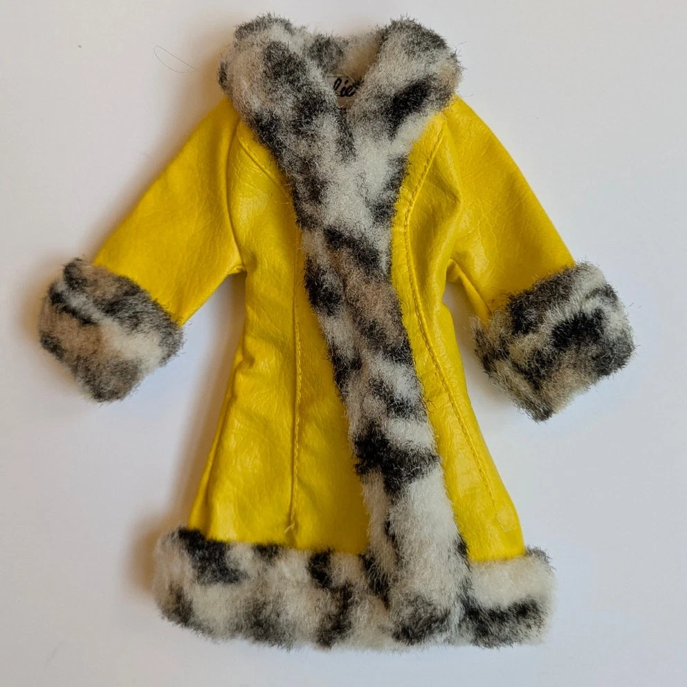 Vintage 1970s Barbie Great Coat #1459 clothing play set. Includes yellow coat with animal print fur trum, matching hat and yellow shoes. Condition: Great vintage condition!