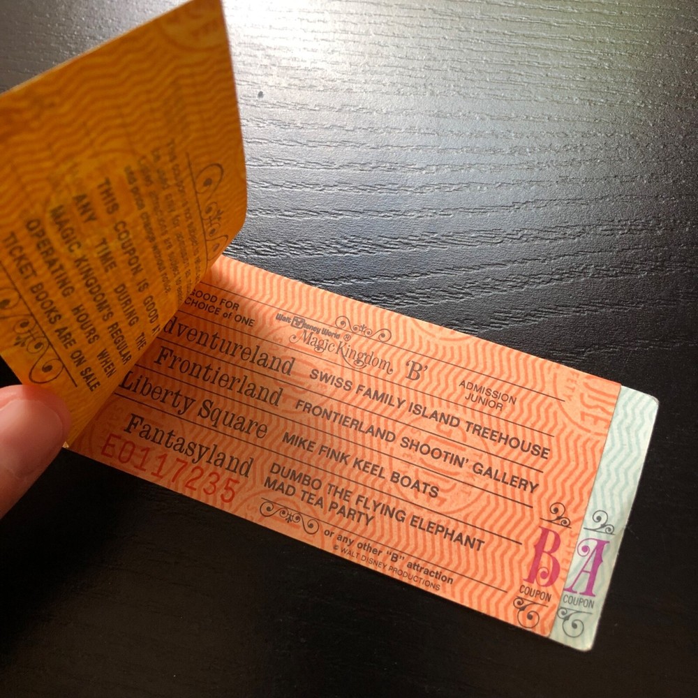 Vintage 1970s Walt Disney World's Magic Kingdom A, B and D paper tickets within a paper coupon admission book. Features your favorite rides such as Enchanted Tiki Birds, Tom Sawyer's Island, Dumbo, Tea Cups, Cinderella's Carrousel and more! Paper is aged and shows wear, over all in good condition. This came from a large vintage collection, so it has been in storage. You will receive the exact item pictured! Please review all photos for exact item and condition as they are included as part of the description. From a smoke free home. It will be carefully packaged for safe shipment to you. Feel free to ask any additional questions. Listing more tickets and coupons books! Check my store, happy to bundle to save on shipping!