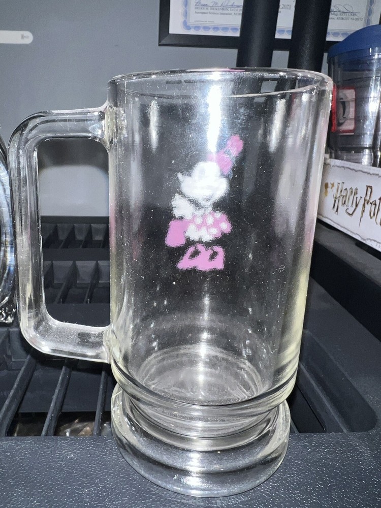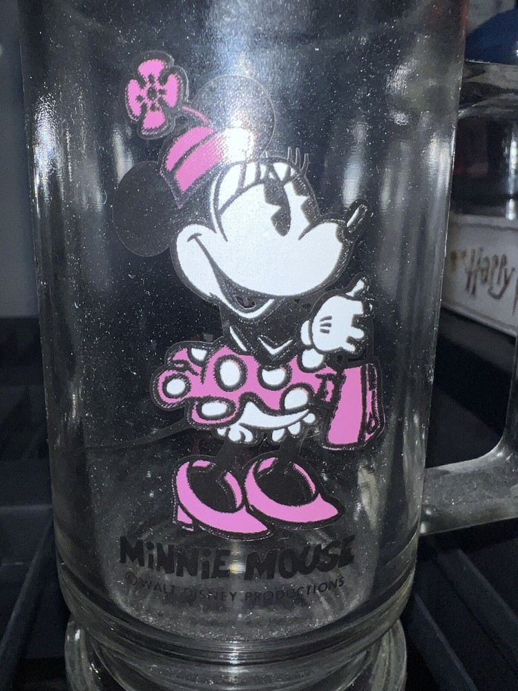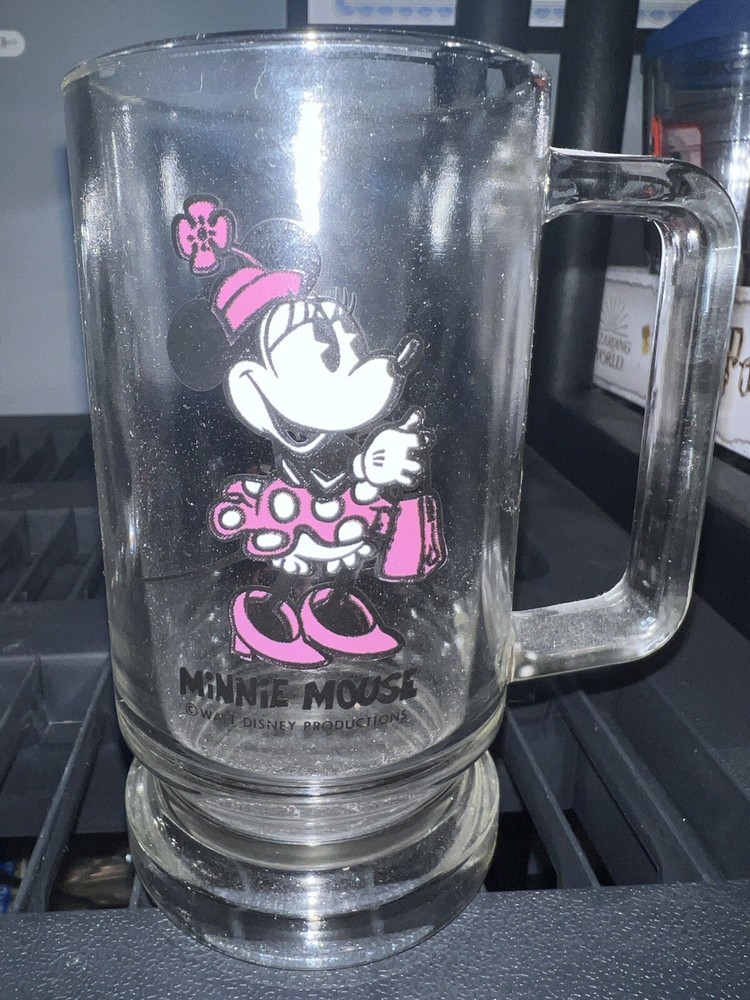Vintage 1970s Minnie Mouse Drinking Glass Mug with Handle, Walt Disney World