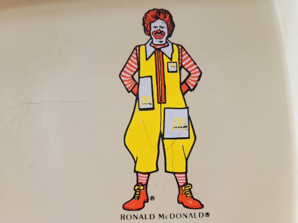 Capture a slice of fast food history with this vintage 1970's McDonald's Happy Meal Tray, featuring the iconic Ronald McDonald. Produced by Simon Marketing, this tray is a nostalgic nod to the golden era of restaurant memorabilia. Ideal for collectors and enthusiasts of McDonald's legacy, it's a vibrant piece that celebrates the brand's storied past.Crafted for durability and designed to make a statement, this tray is a must-have for those who appreciate the art of advertising and the cultural impact of restaurant chains. Whether displayed in your home, office, or restaurant-themed collection, it's sure to be a conversation starter and a beloved piece of Americana.